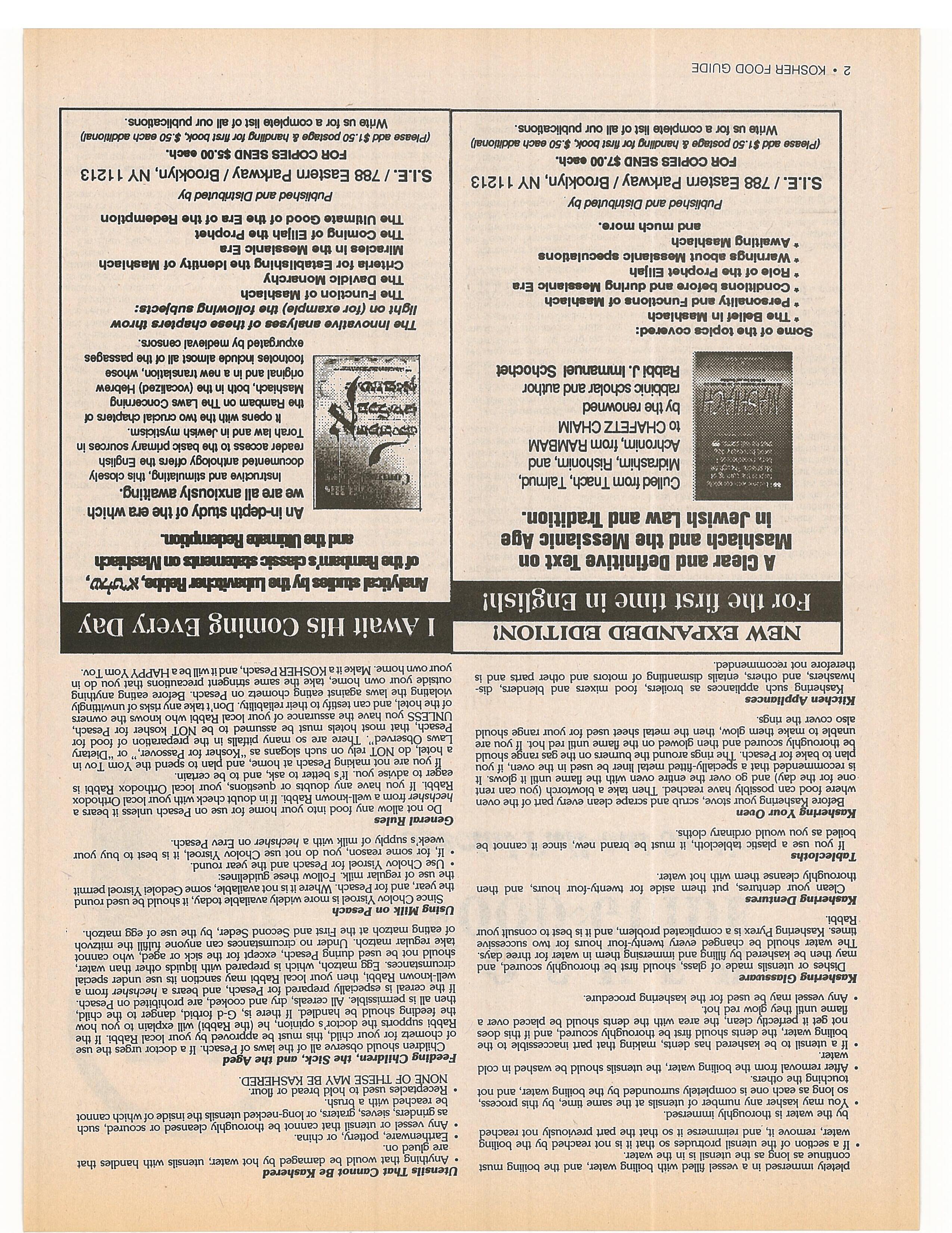 CALL TOLL FREE: 1-800-8-SHALOM Pesach 5752/April 1992 25