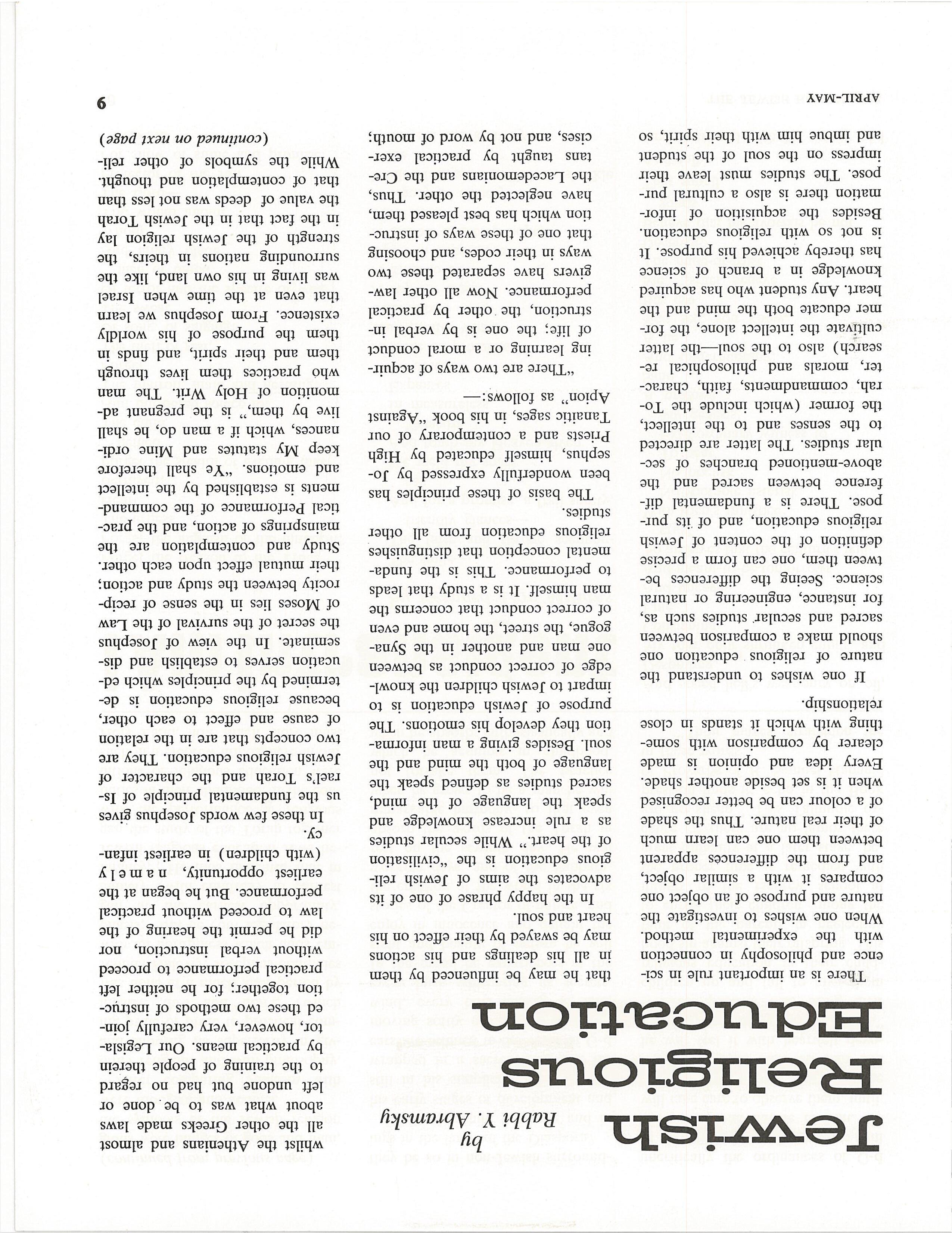Answer: I trust you will not take it amiss if I will quote in this con nection the words of the wisest of all men, King Solomon: “G-d made man straight, but they sought many accounts.” In other words, man often confuses himself with delving, unnecessarily, into inquiries and ac counts of things which should be taken for granted and which do not really present any problems. Need less to say, that the more intellectual a person is; the more he is inclined to seek “accounts” and, consequent ly, the more apt he is to get con fused.
