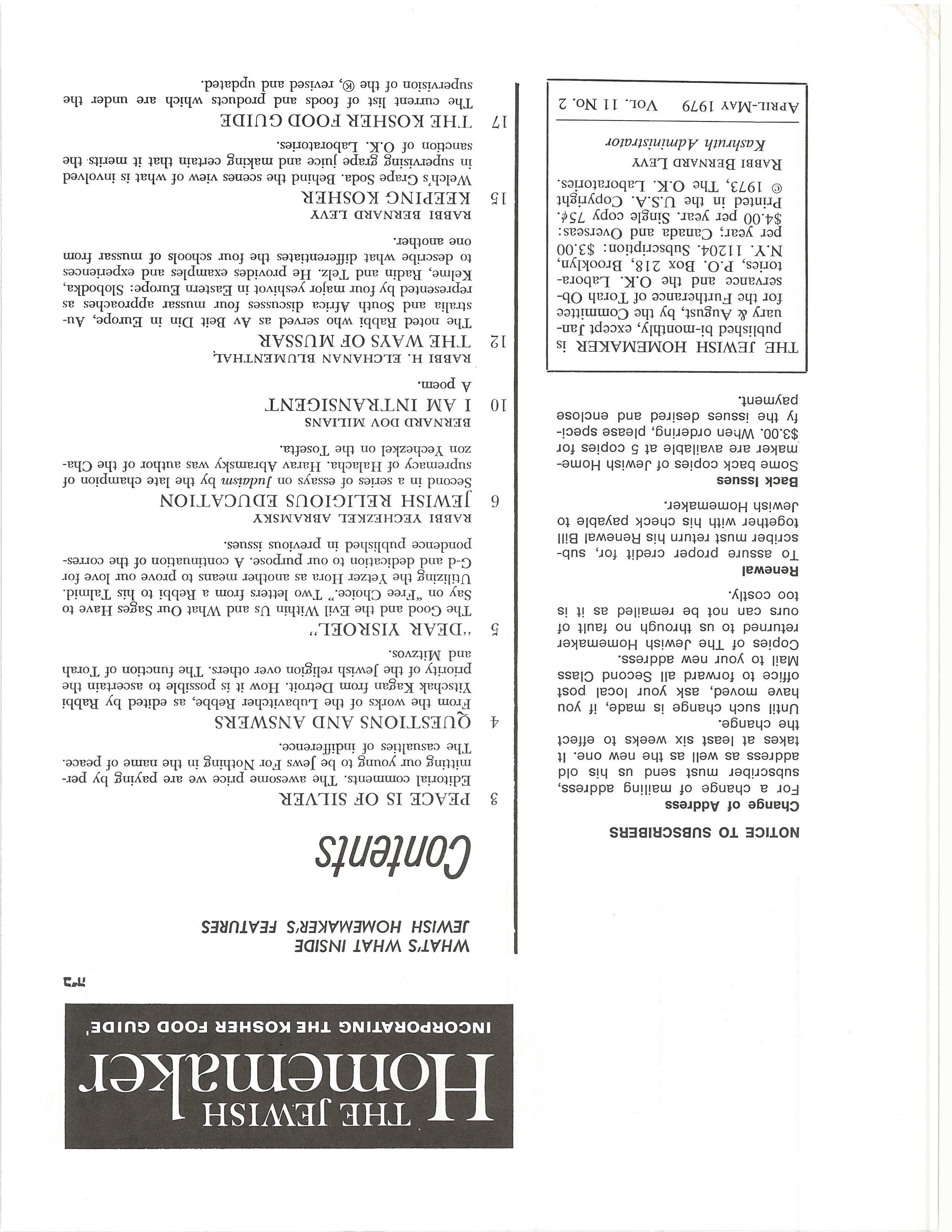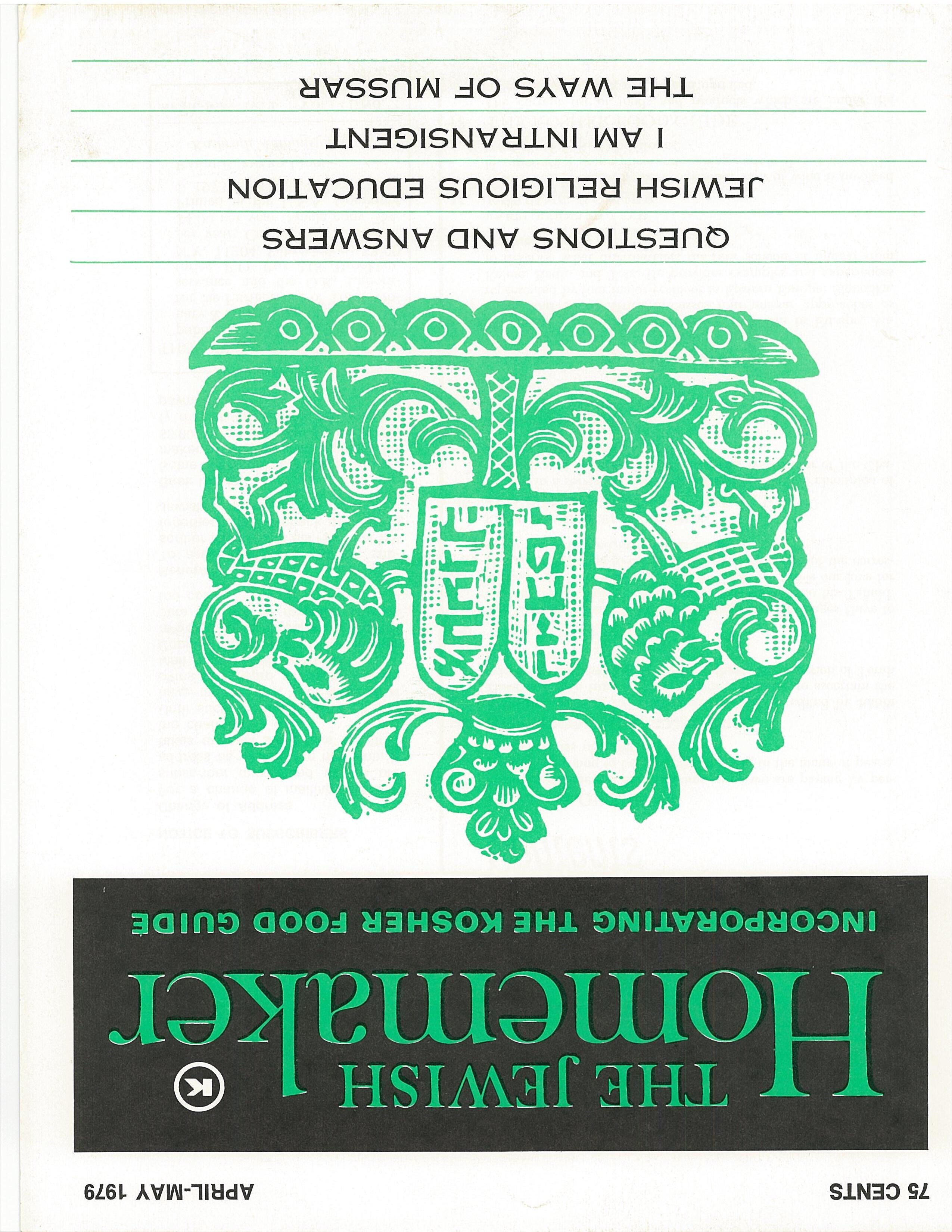 AMERICA’S ONLY MAGAZINE CREATED JUST FOR YOU THE CONCERNED JEWISH WIFE, MOTHER, DAUGHTER. A MUST FOR THE ENTIRE FAMILY