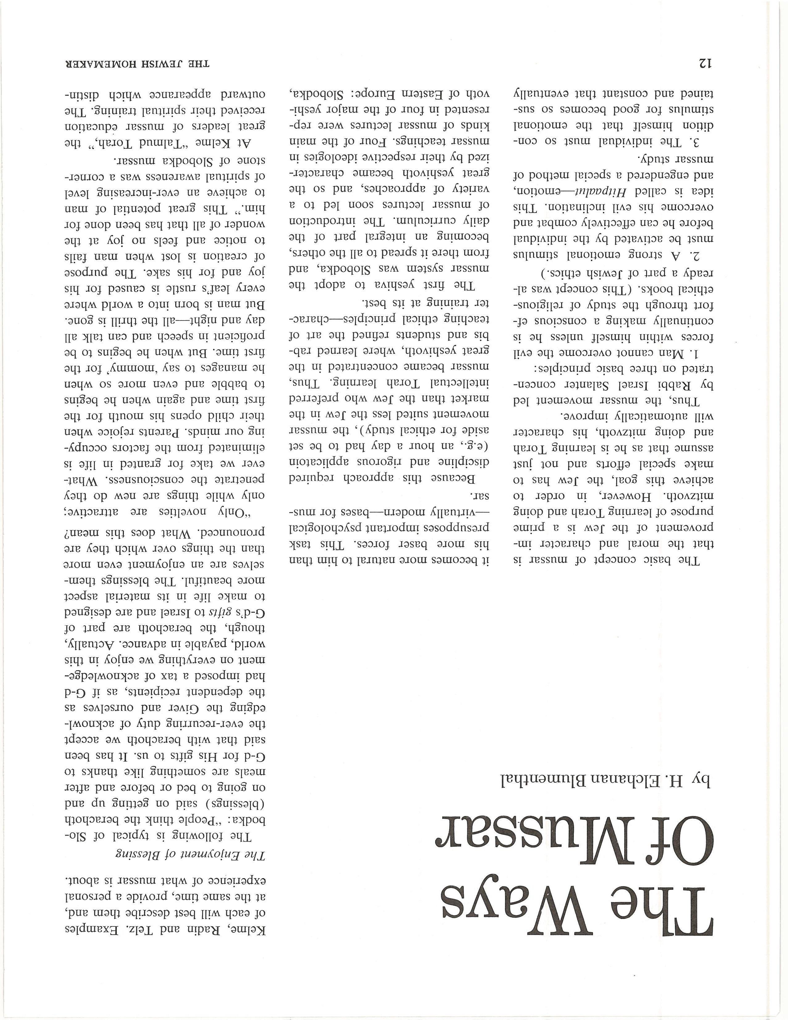 THE JEWISH HOMEMAKER A THOUGHT FROM THE P.O. BOX 324 LUBAVITCHER REBBE