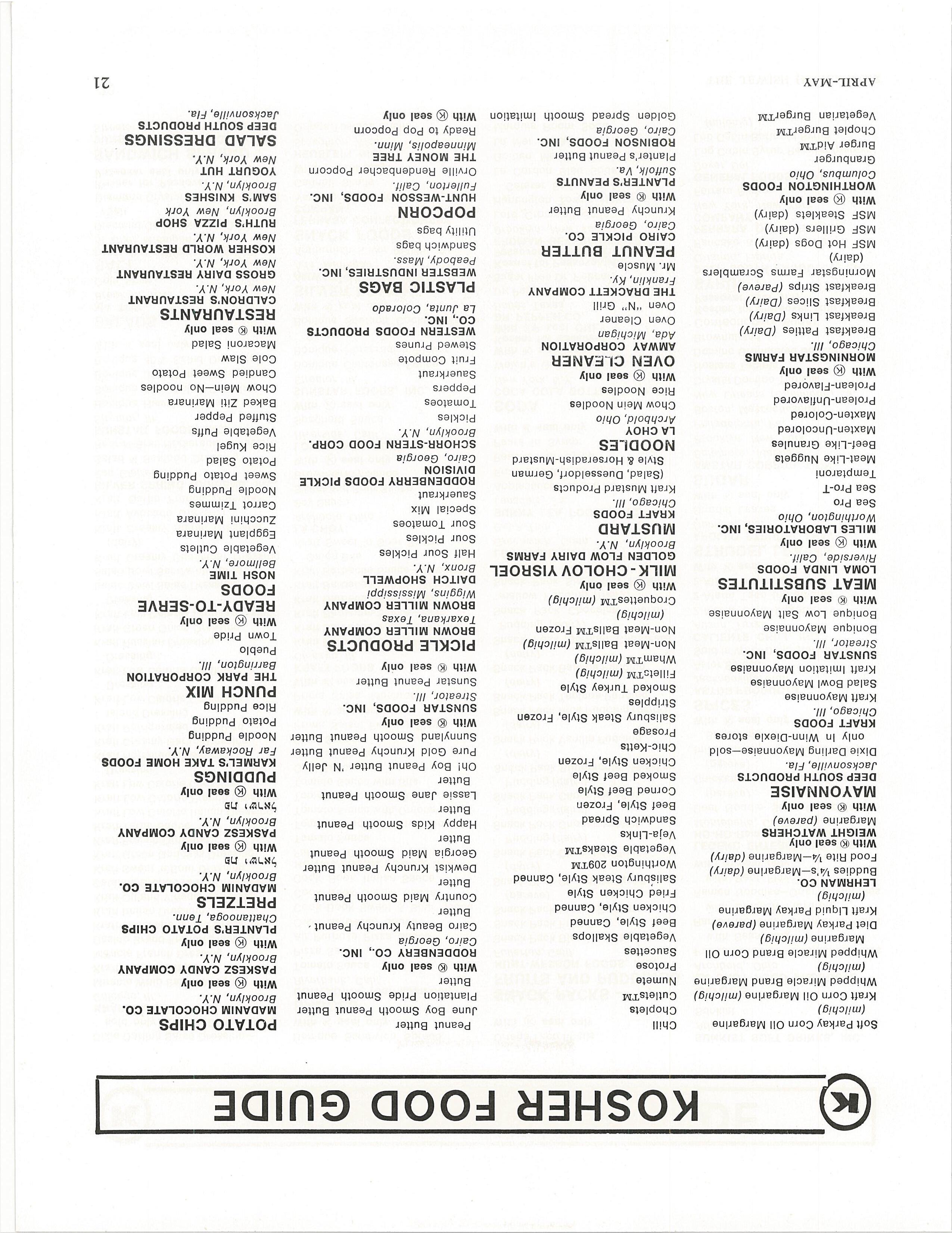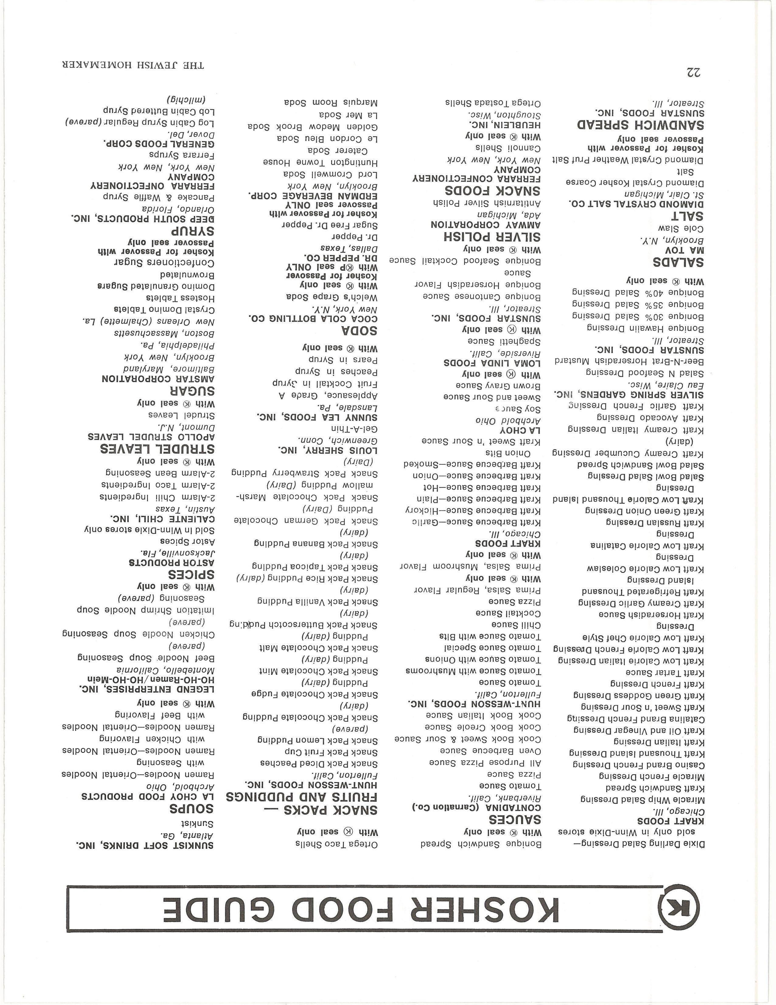 INCORPORATING THE KOSHER FOOD GUIDE FEATURES: