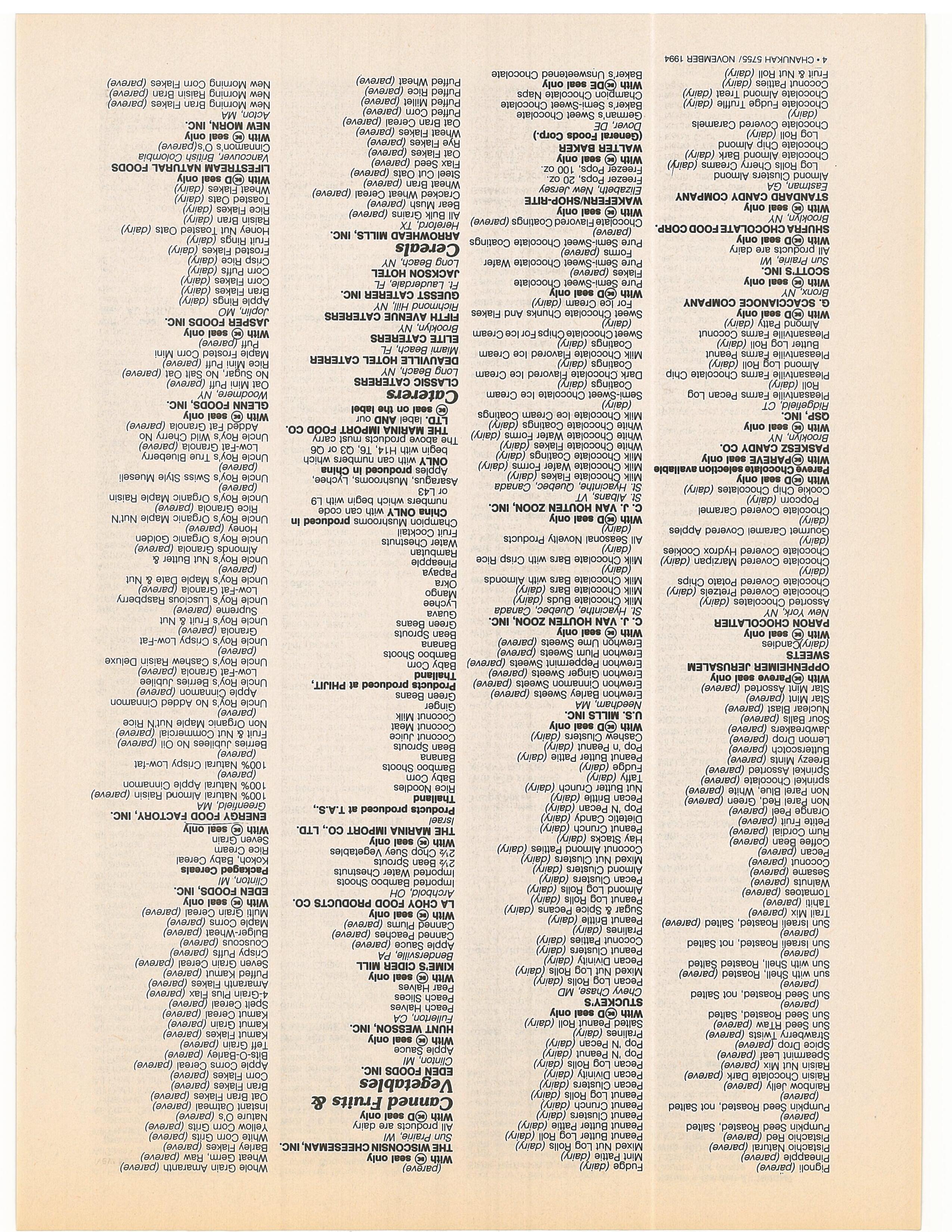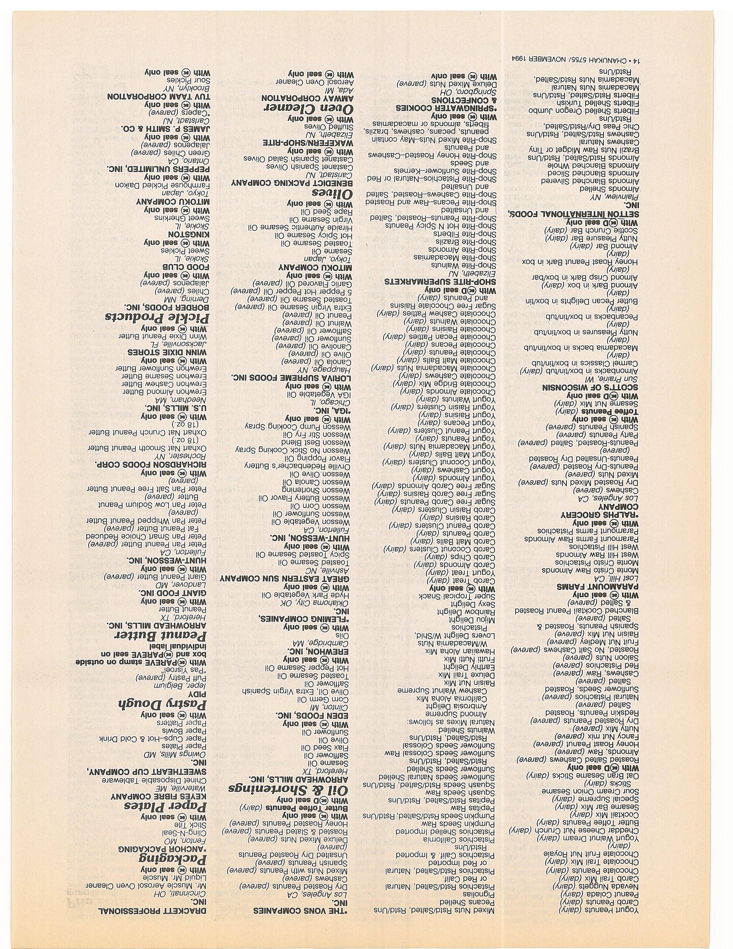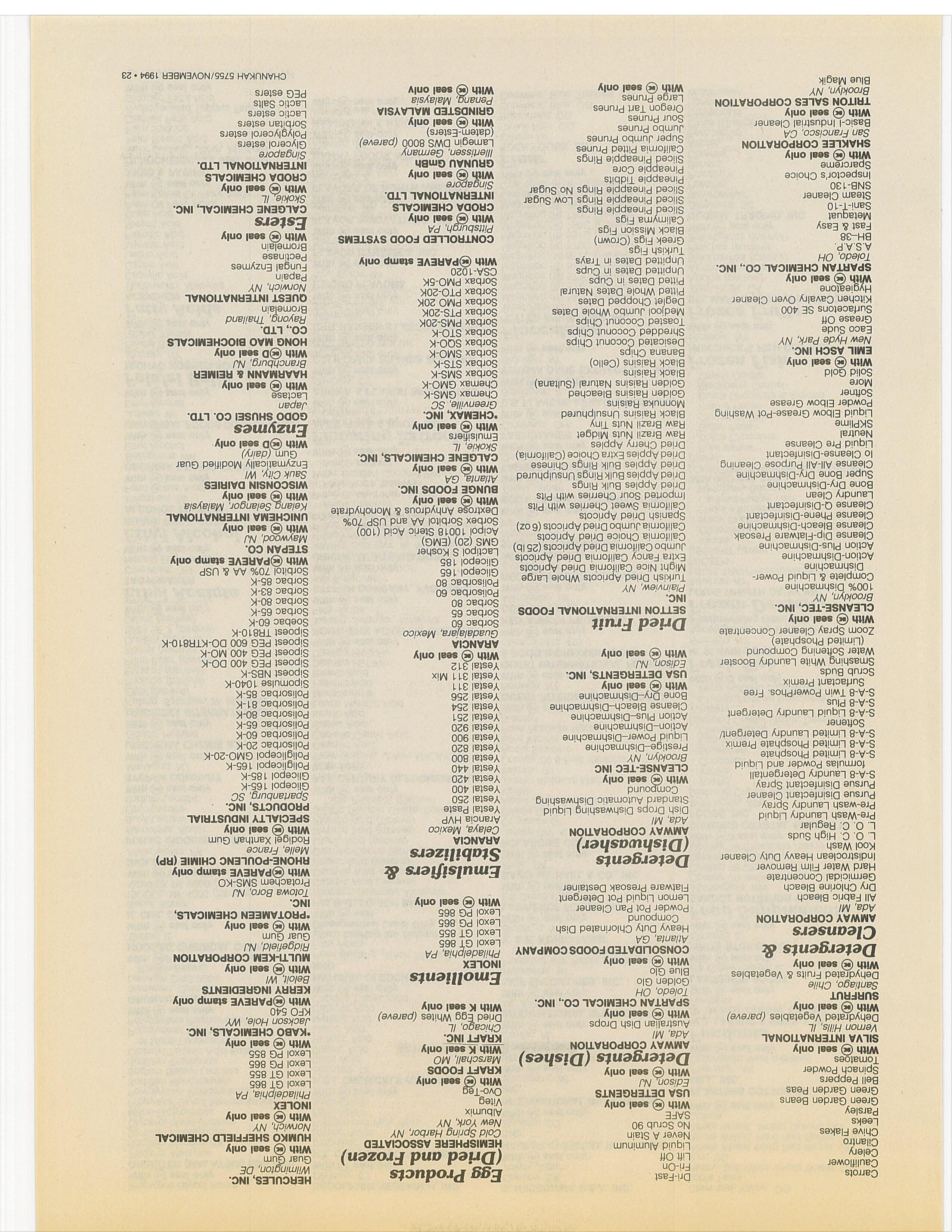 Companies: Please check your listing in the Koshor Food Guide. Ifyou want any changes or have any questions, contact the O.K Labs 9-5 EST. (718) 756-7500