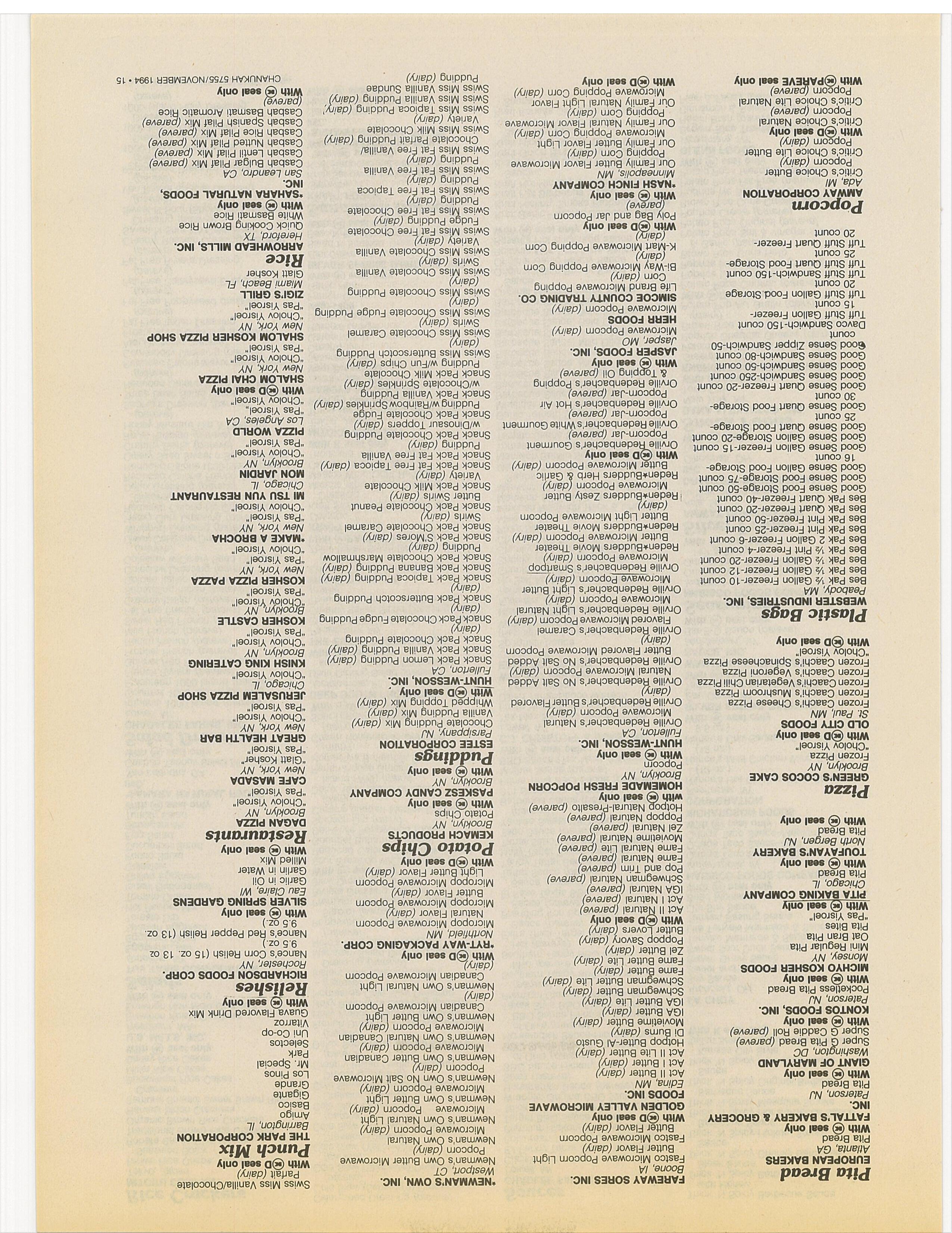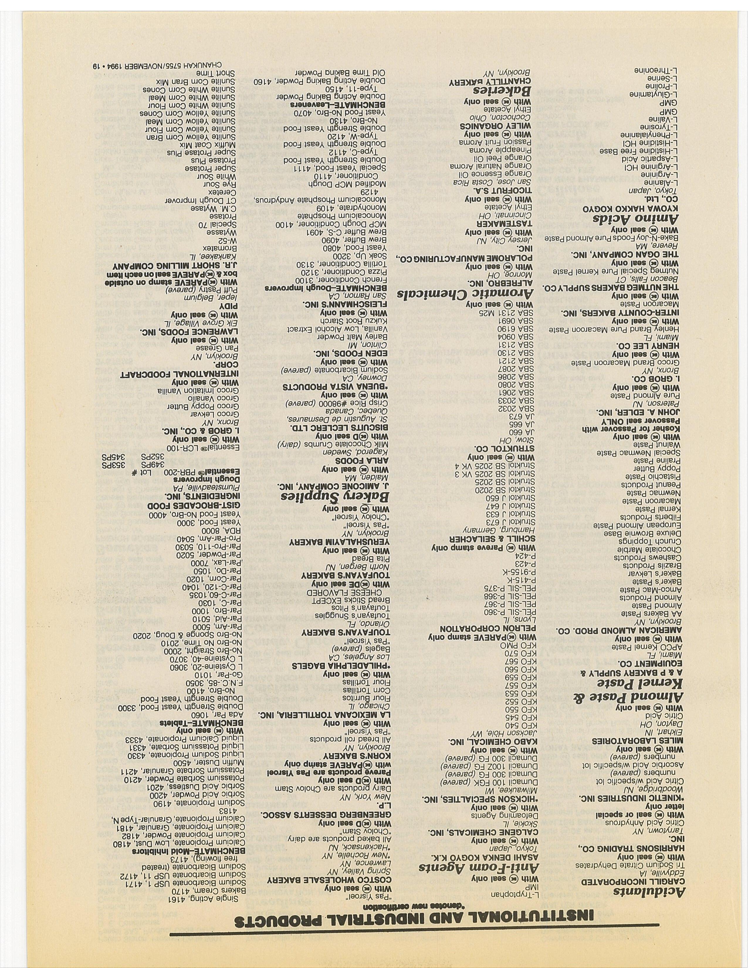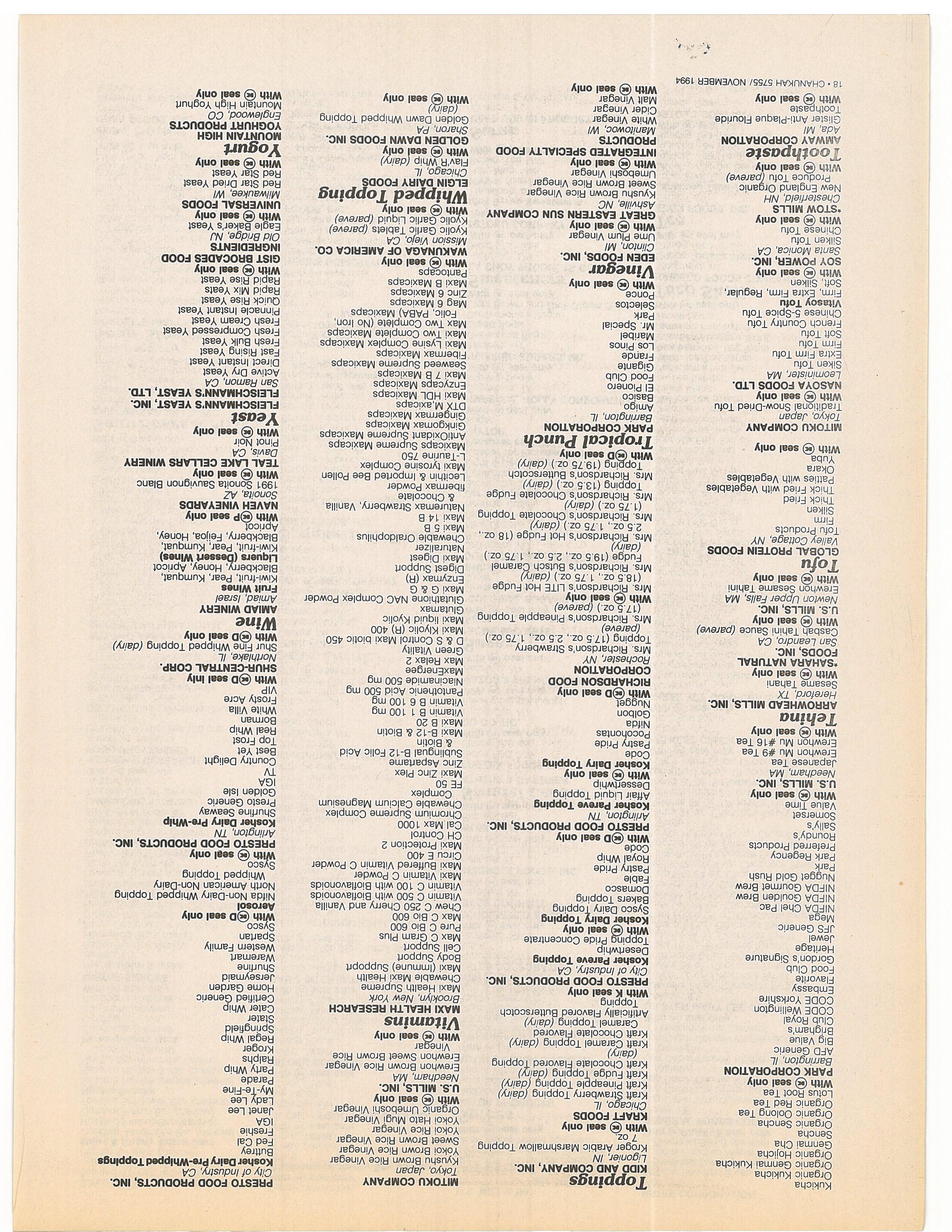 Companies: Please check your listing in the Koshor Food Guide. Ifyou want any changes or have any questions, contact the O.K Labs 9-5 EST. (718) 756-7500