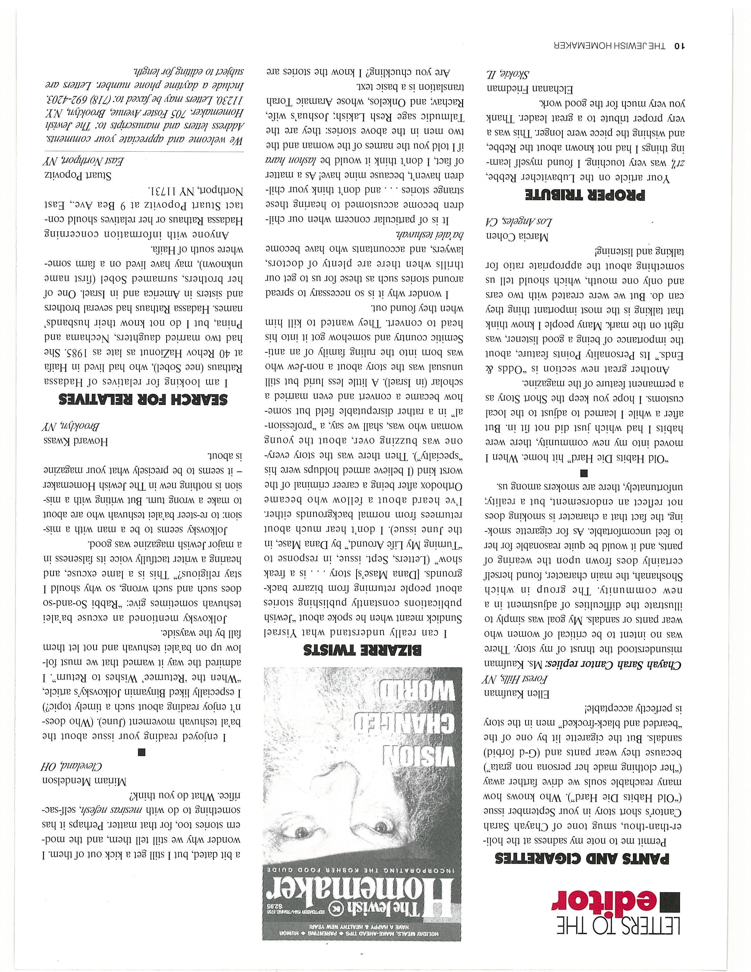 The diossidim, trained as they were in halding fosr to the eternal standards of the Torah despite the shifting trends of conrern porary thought, reacted seth puzzlement. They asked P~ Yeliuidah 1db, the ,~iter Fiebbe’s brother, to inquire obour the Rebbeis intent.