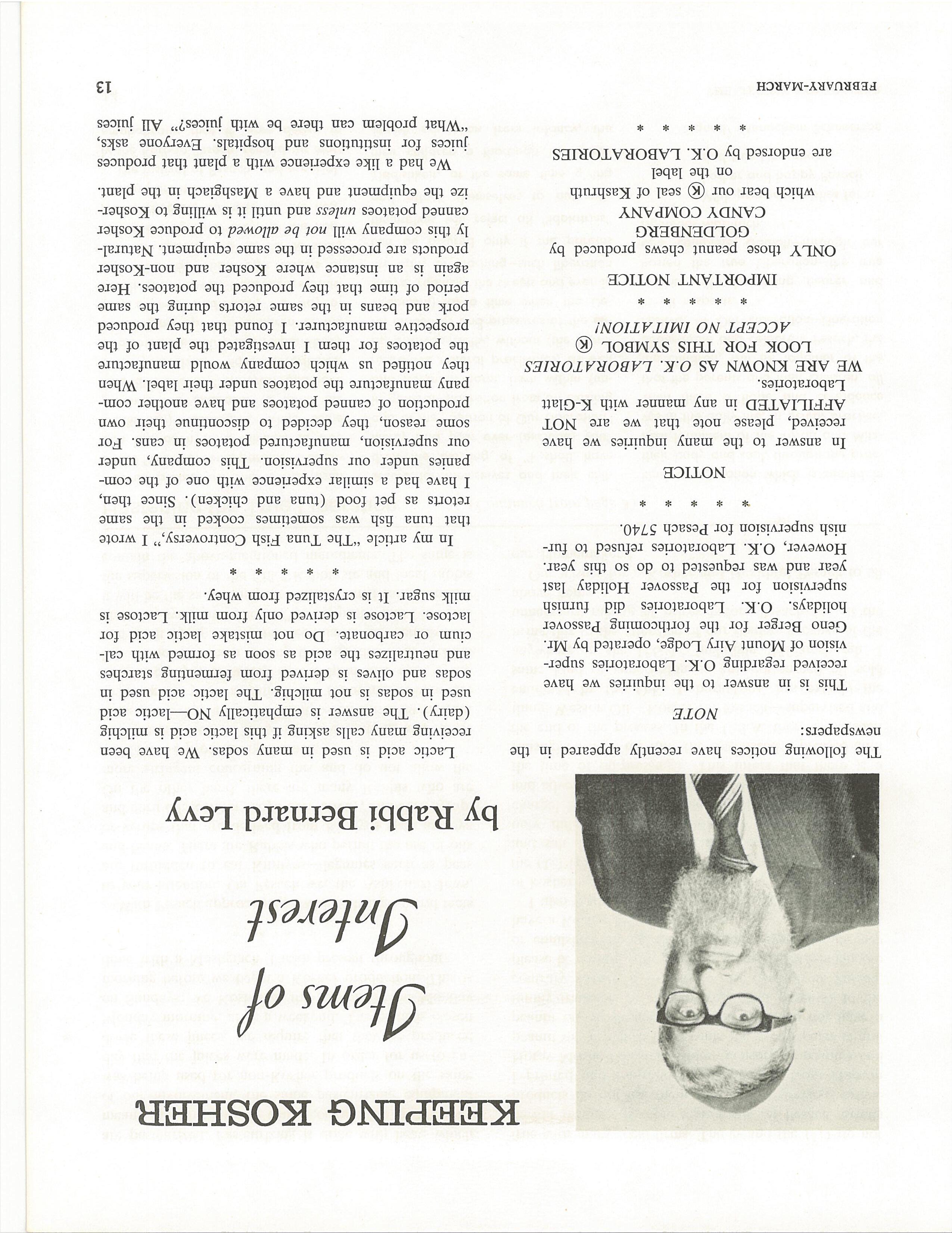 RABBI BERNARD LEVY 13 KEEPING KOSHER