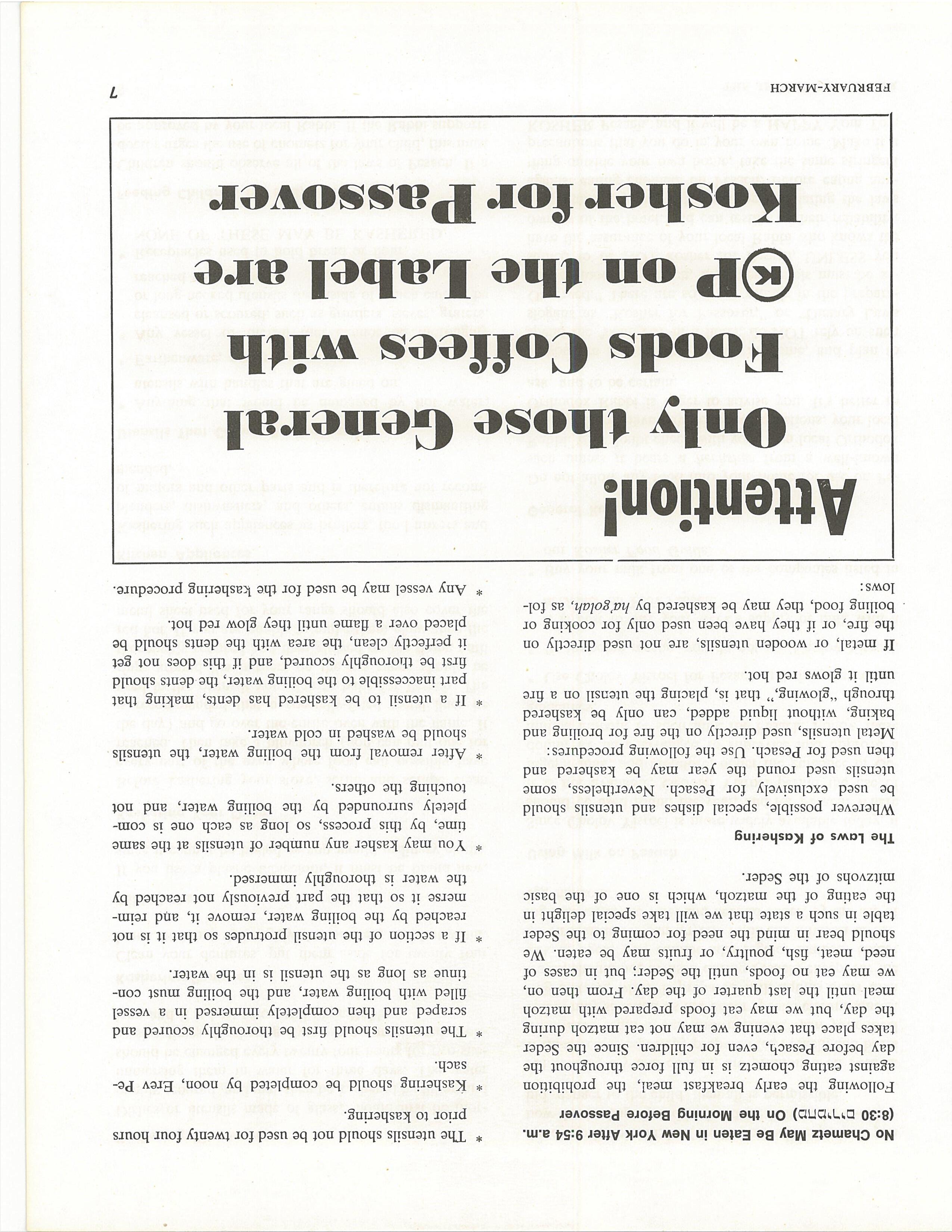 Items of ~Interest regarding ~kashruth~ for the bntire year and particularly for Pesach.