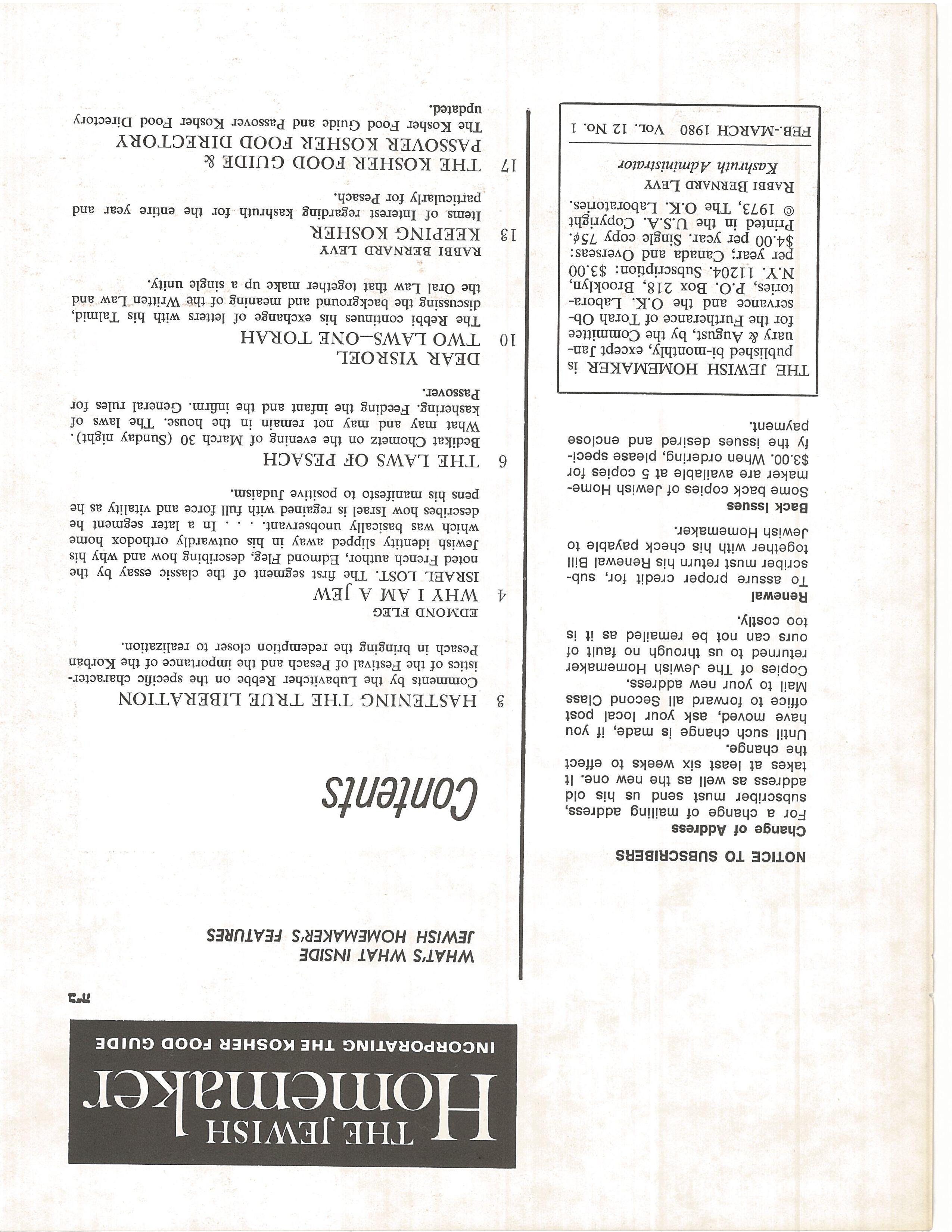 Copies of The Jewish Homemaker returned to us through no fault of ours can not be remailed as it is too costly.