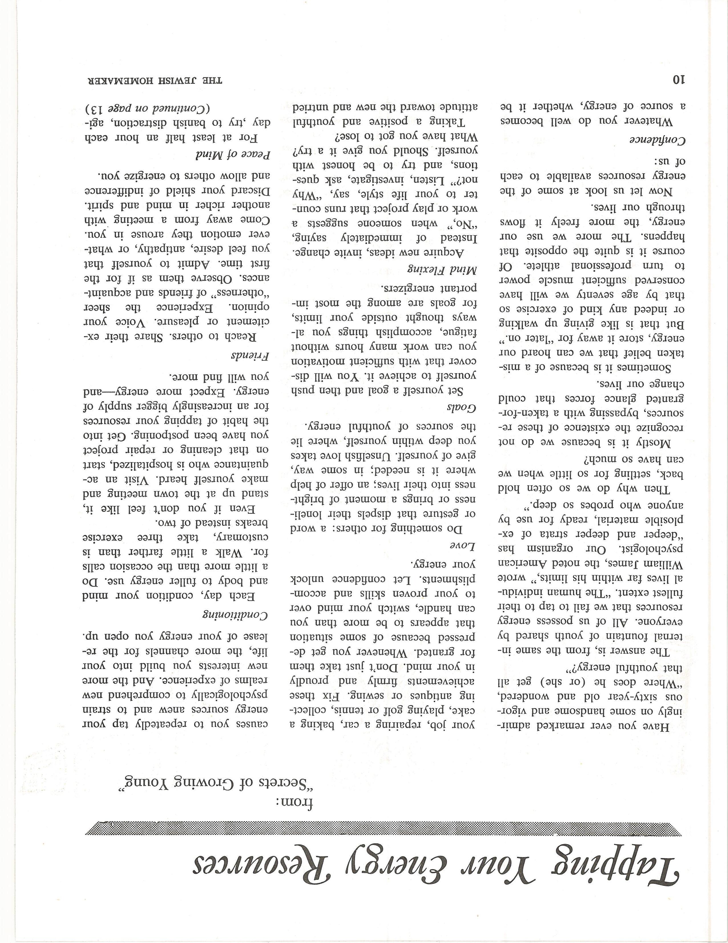 Copies of The Jewish Homemaker returned to us through no fault of ours can not be remailed as it is too costly.