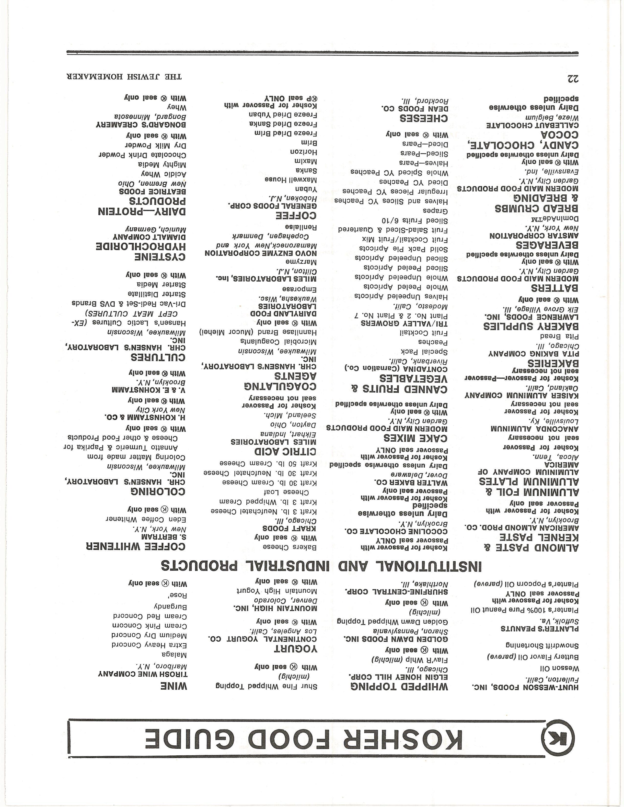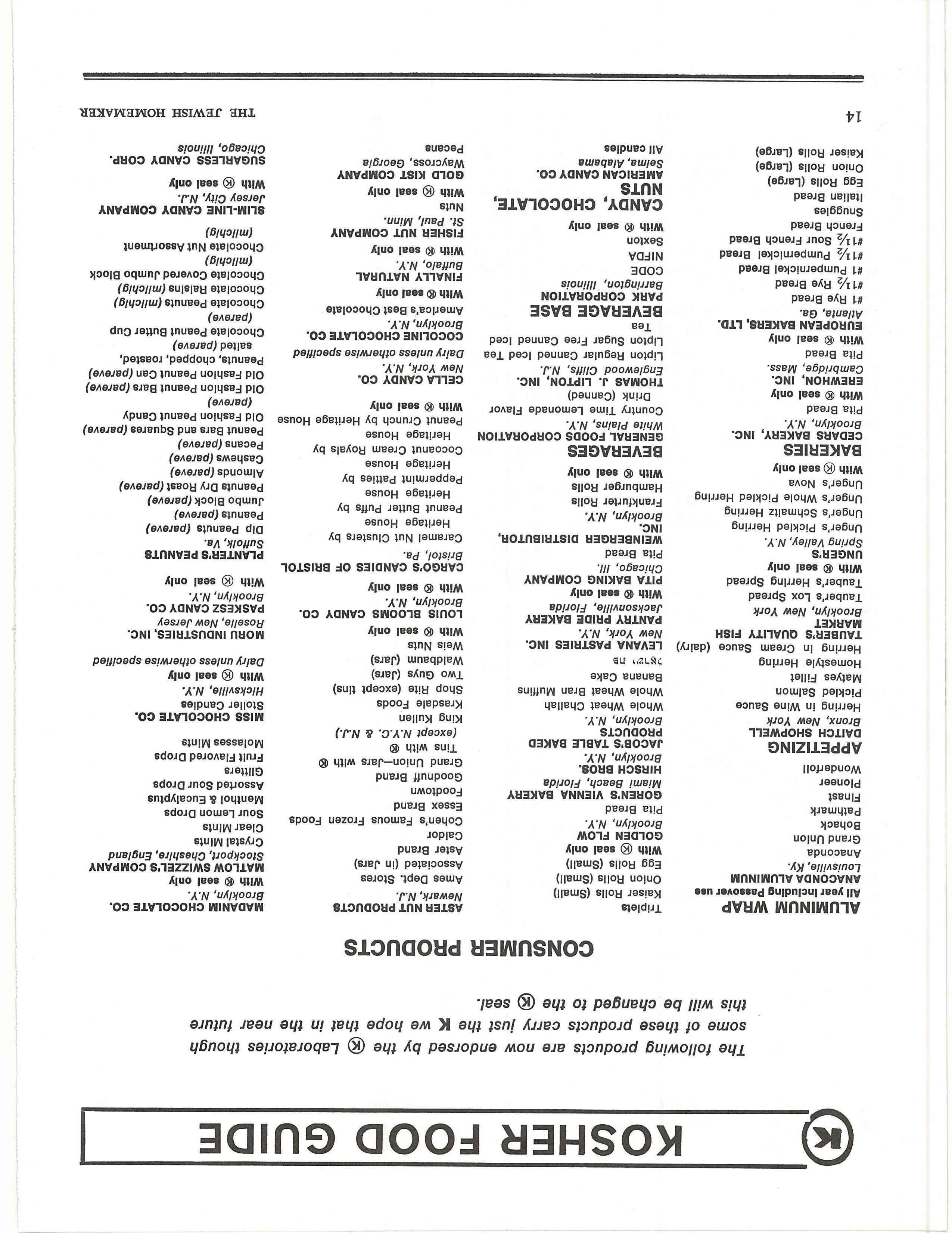 Keeping the homemaker abreast of changes on the consumers’ marketplace. A kosher chewing gum, new quality vitamins, food and drinks under supervision.