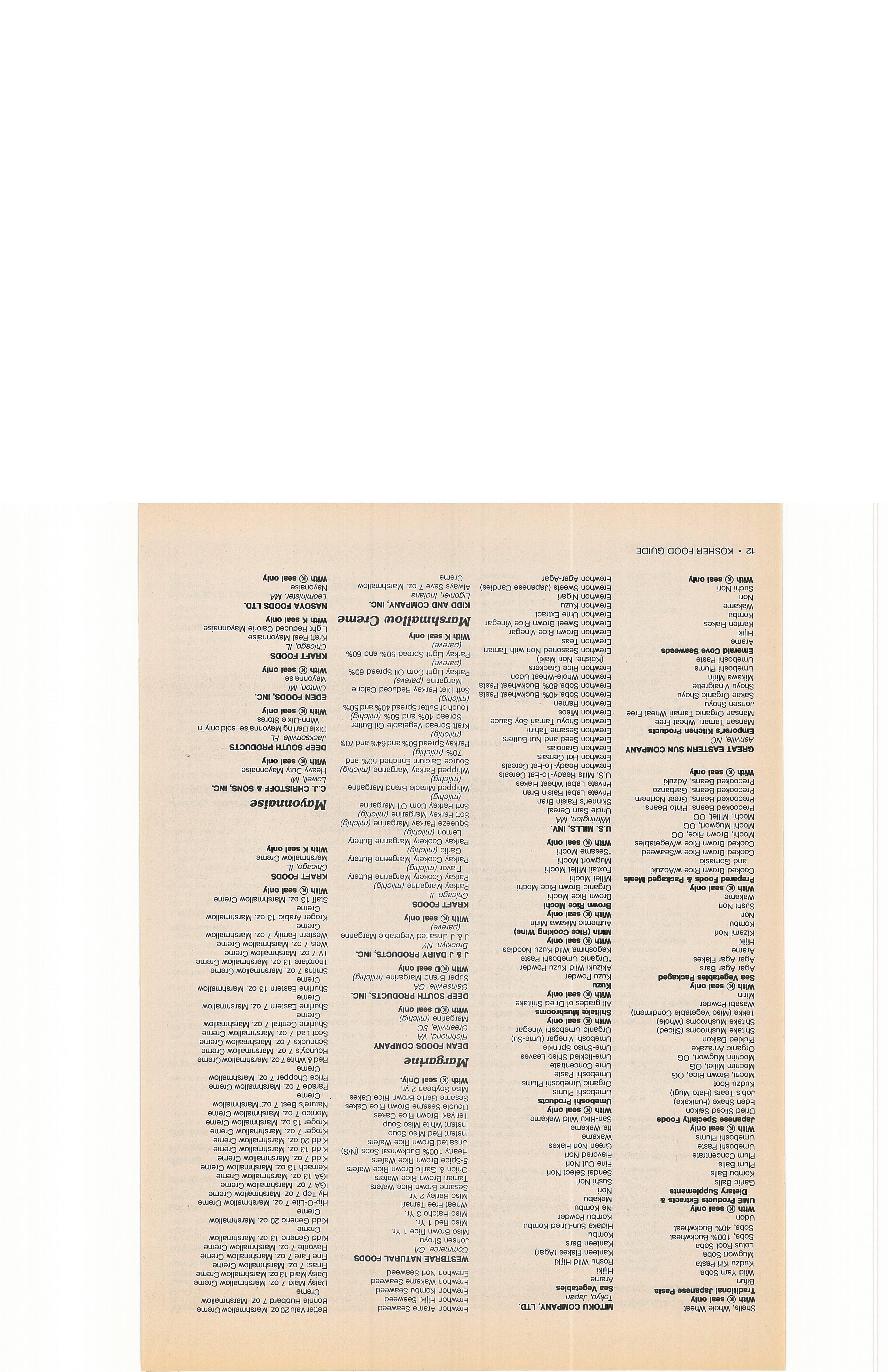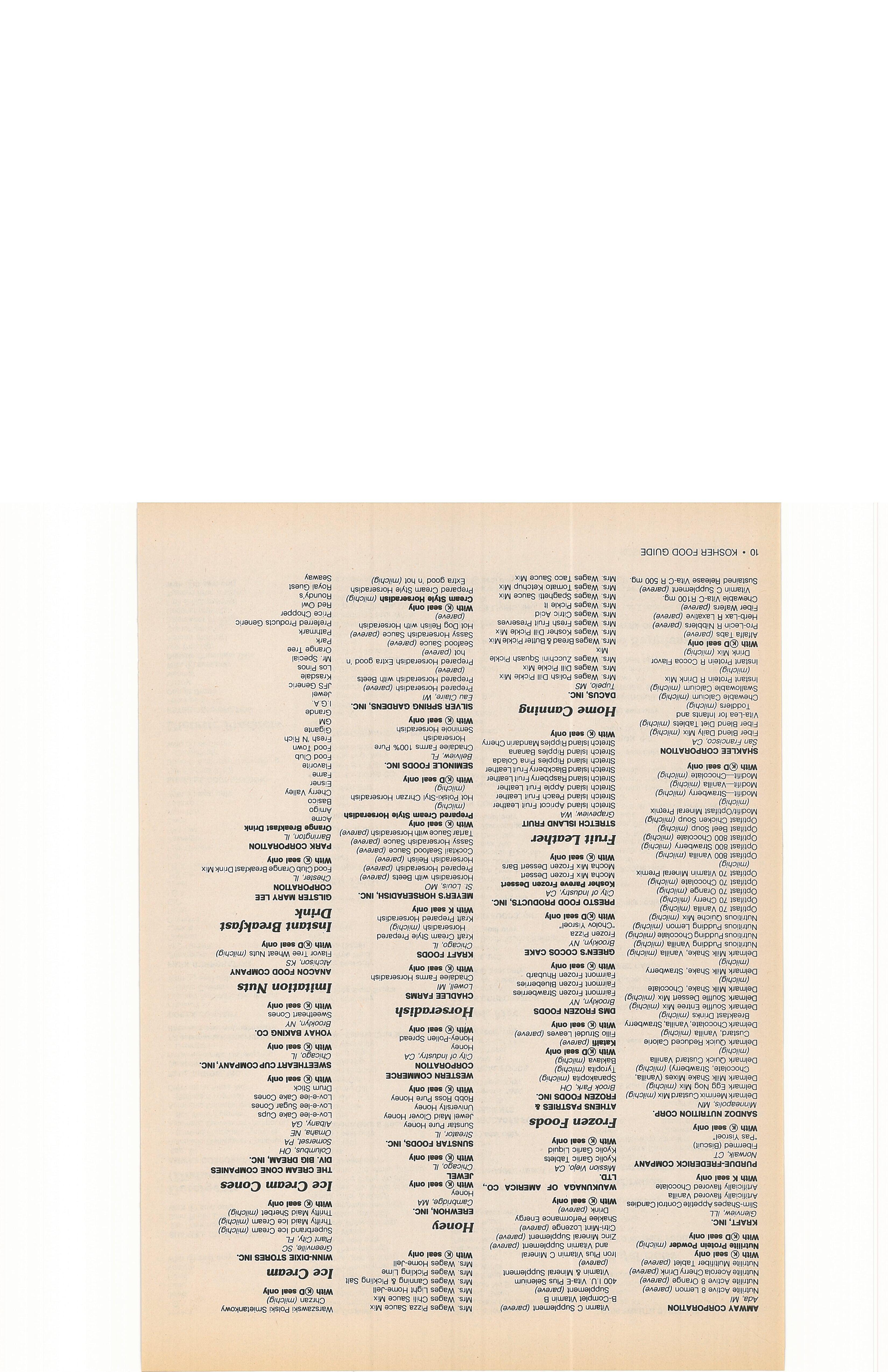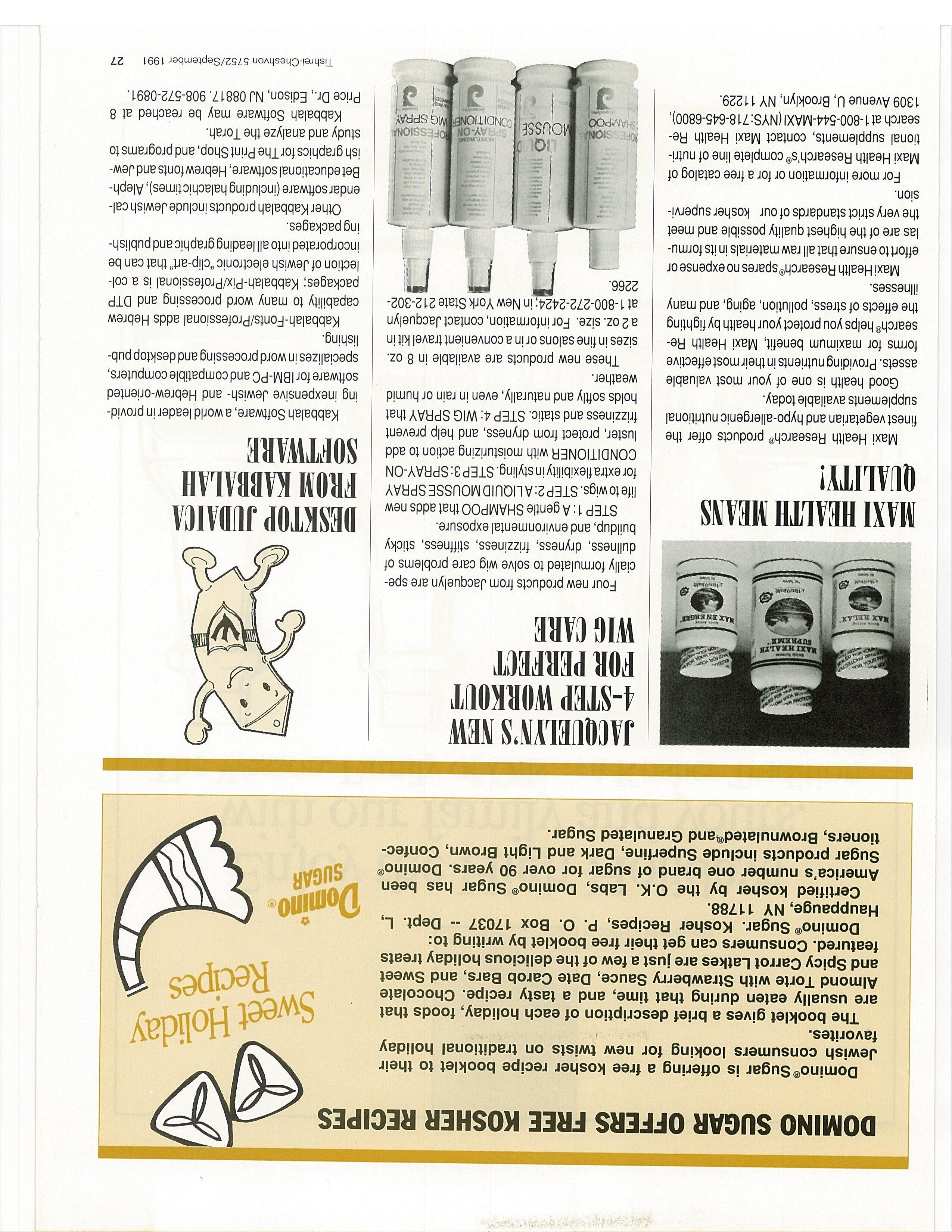 The booklet gives a brief description of each holiday, foods that are usually eaten during that time, and a tasty recipe. Chocolate Almond Torte with Strawberry Sauce, Date Carob Bars, and Sweet and Spicy Carrot Latkes are just a few of the delicious holiday treats featured. Consumers can get their free booklet by writing to: Domino~ Sugar. Kosher Recipes, P. 0. Box 17037 Dept. L, Hauppauge, NY 11788.