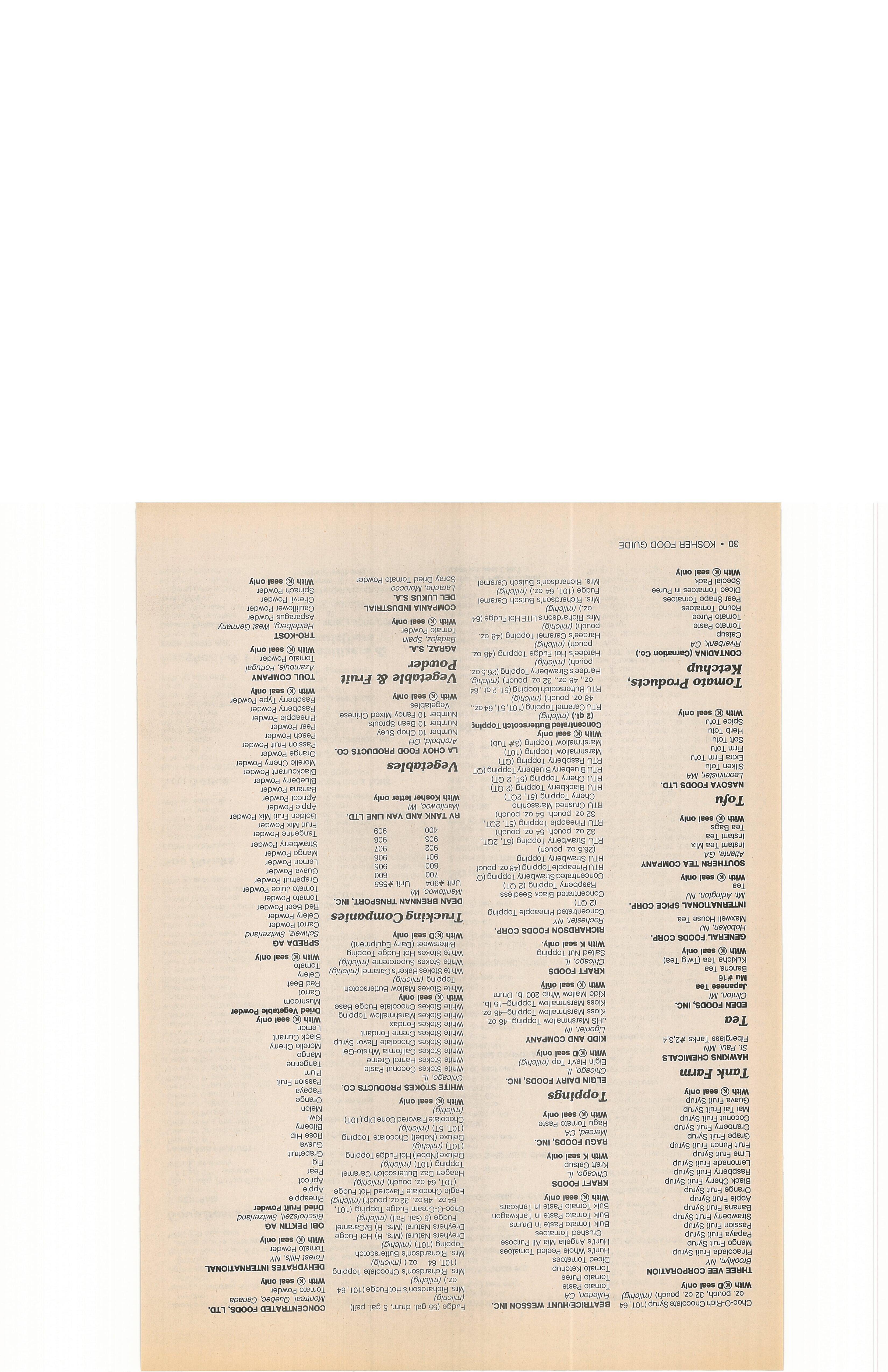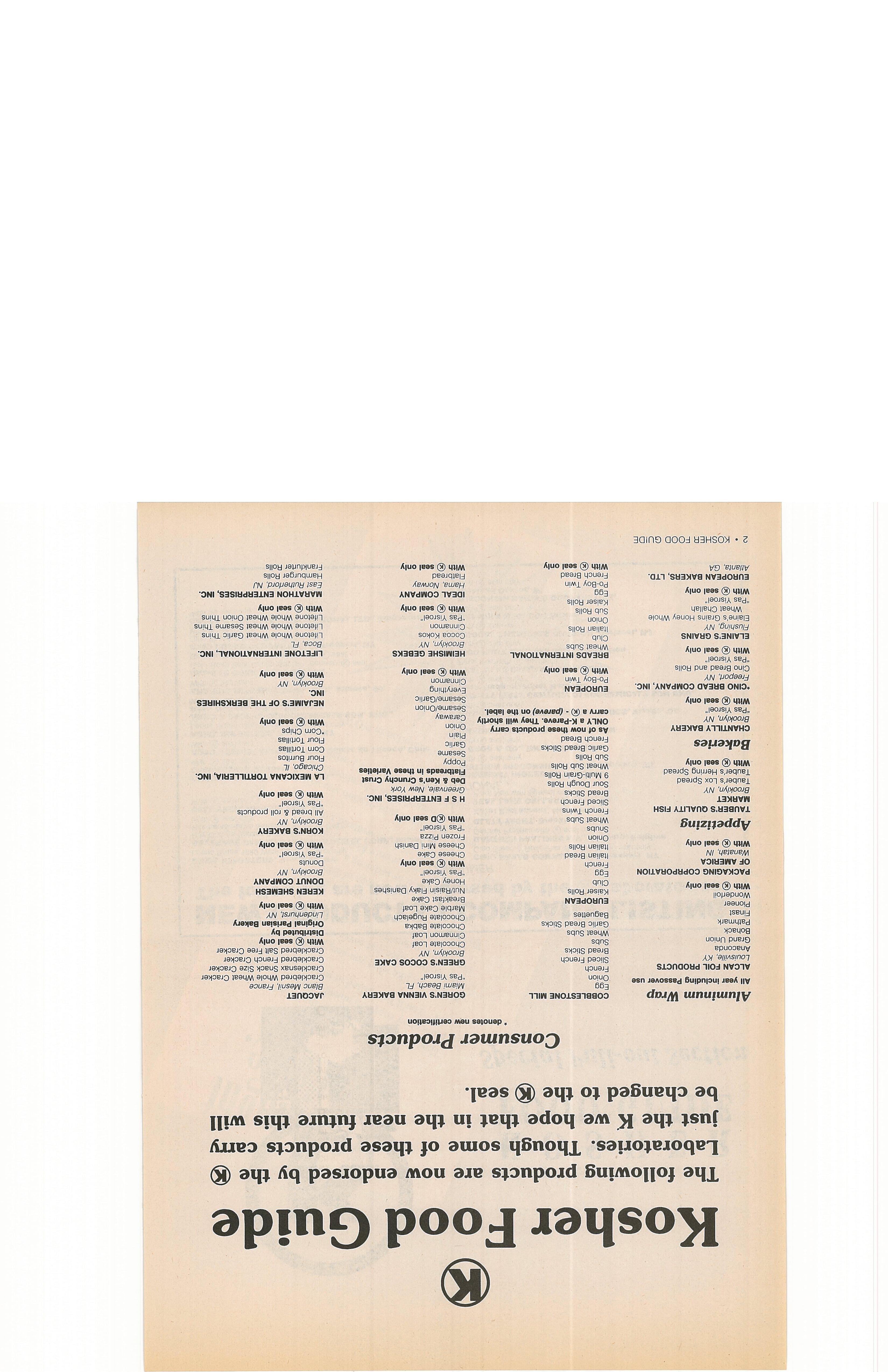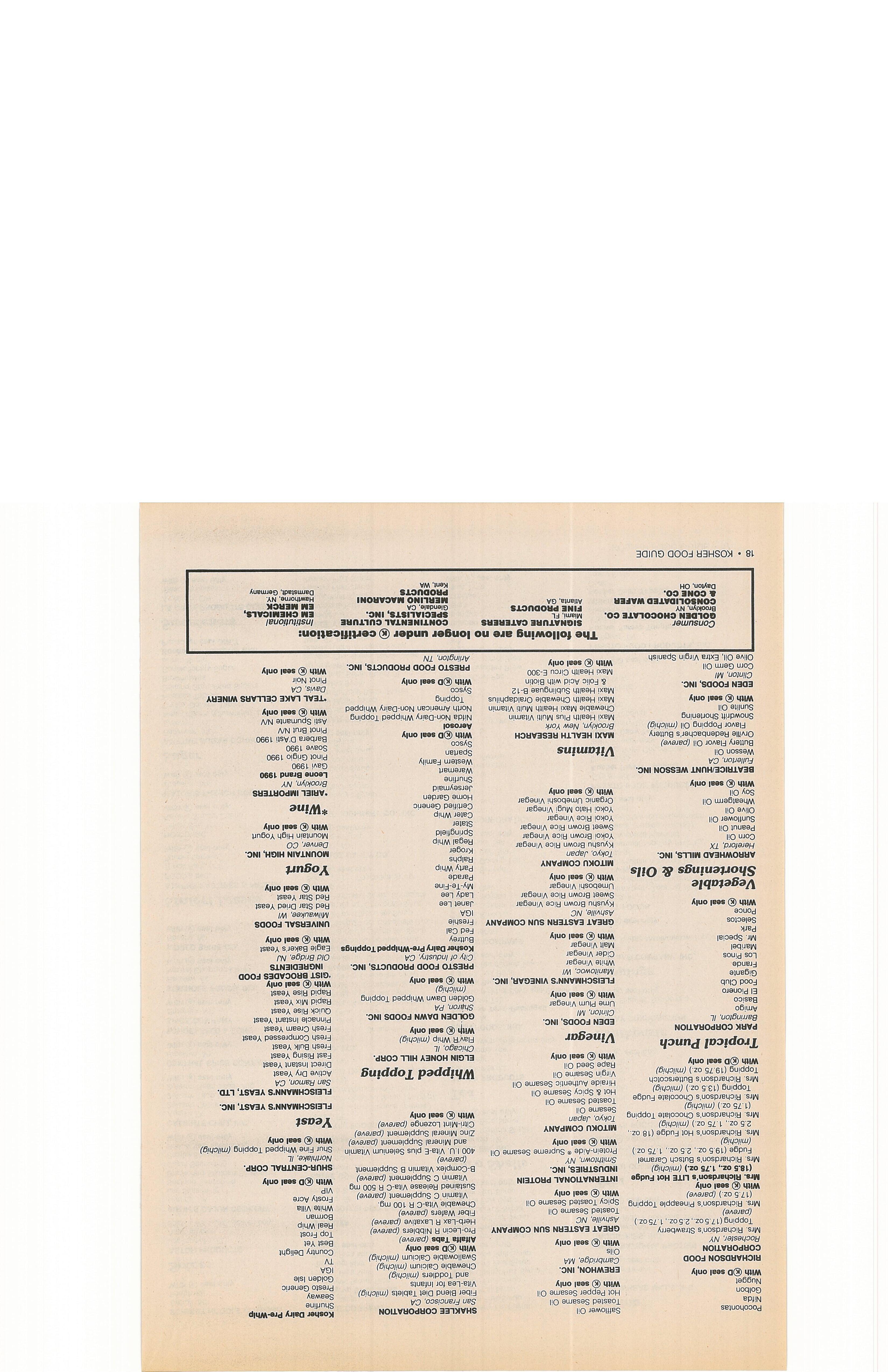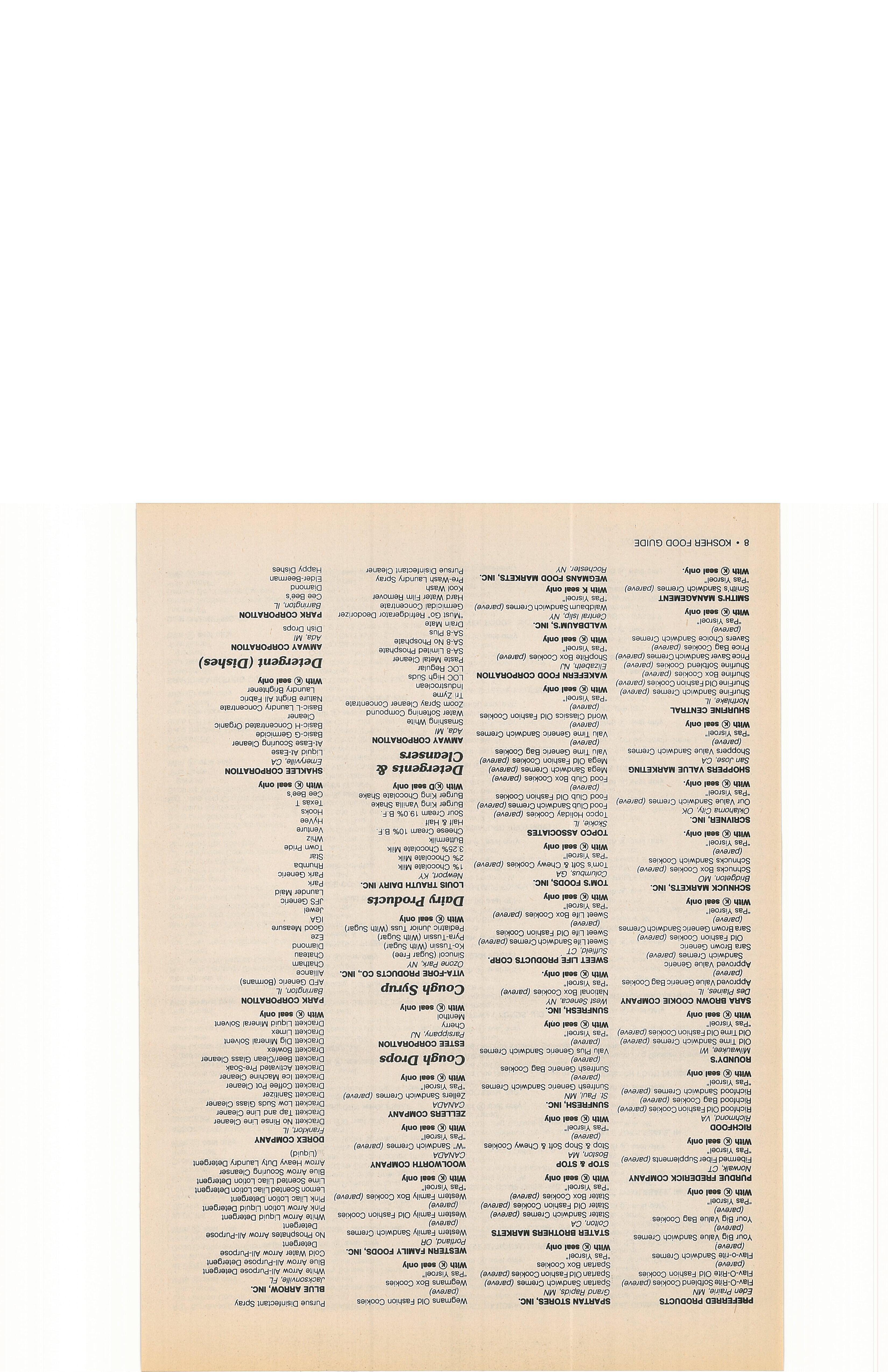 The booklet gives a brief description of each holiday, foods that are usually eaten during that time, and a tasty recipe. Chocolate Almond Torte with Strawberry Sauce, Date Carob Bars, and Sweet and Spicy Carrot Latkes are just a few of the delicious holiday treats featured. Consumers can get their free booklet by writing to: Domino~ Sugar. Kosher Recipes, P. 0. Box 17037 Dept. L, Hauppauge, NY 11788.