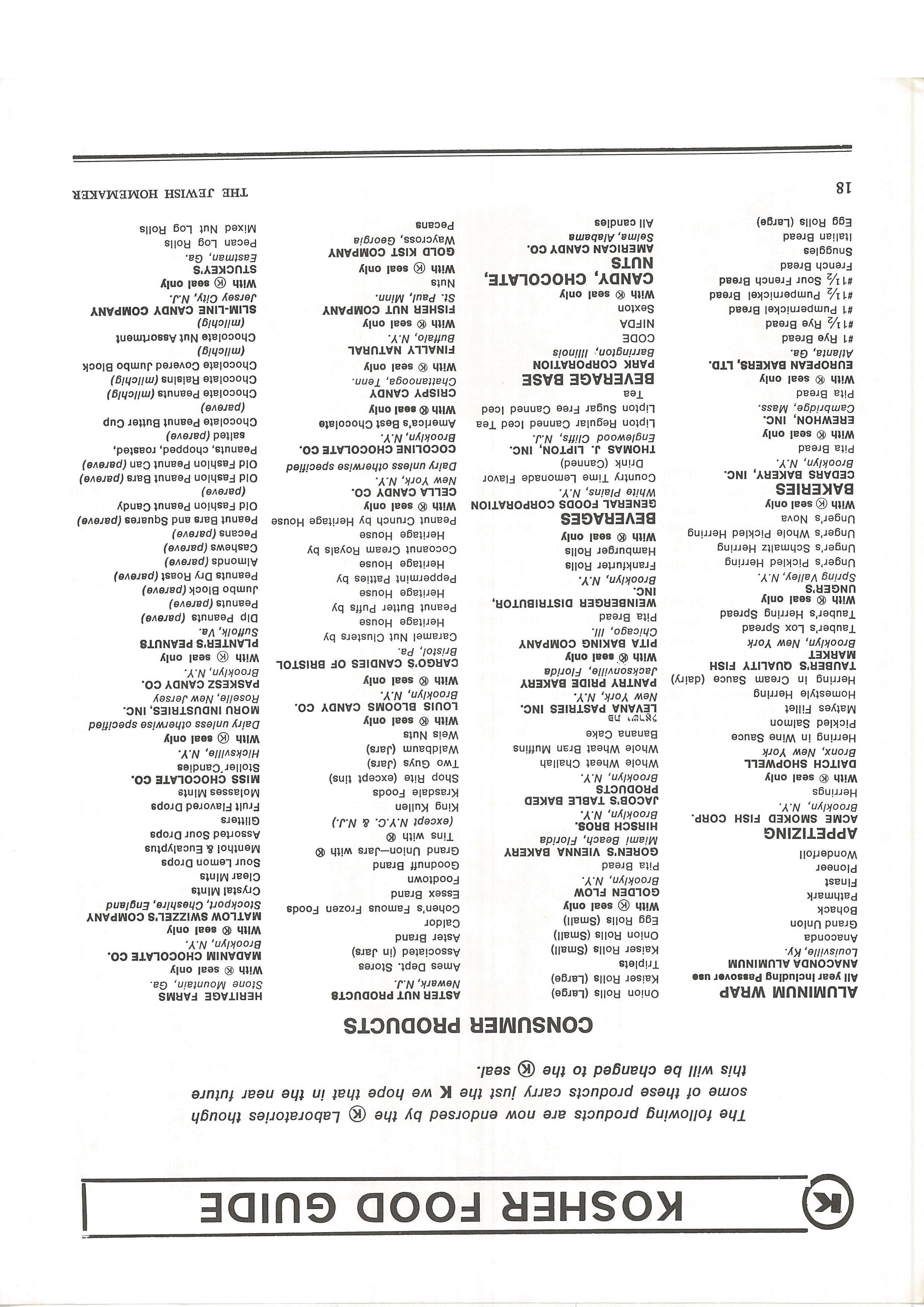 INCORPORATING THE KOSHER FOOD GUIDE
