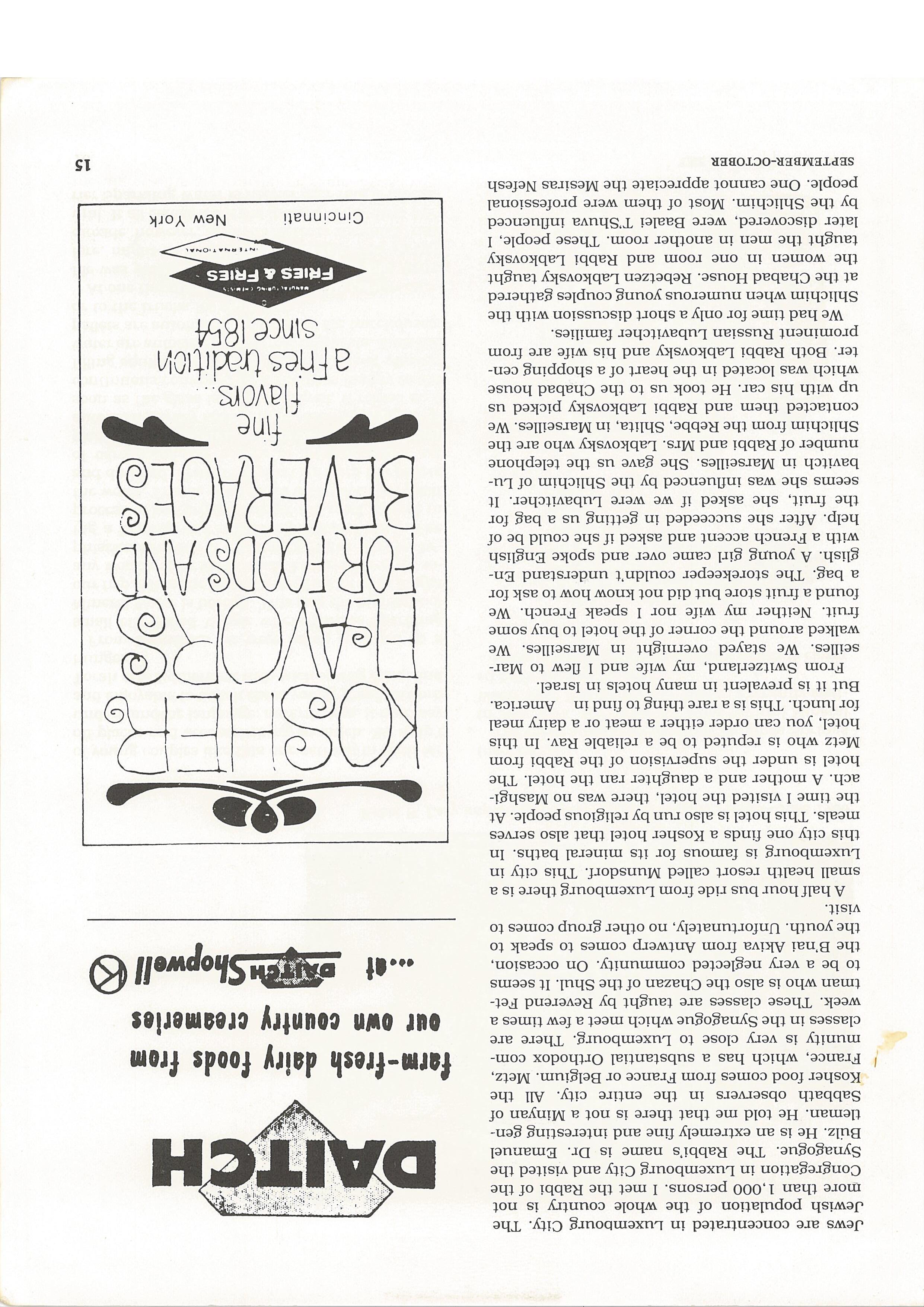 Europe continued. The wide-ranging field of kashruth: Holland, Luxembourg, Switzerland, France and the supervision of products in each for the benefit of the homemaker. And wishes for a Healthy Kosher year. 18