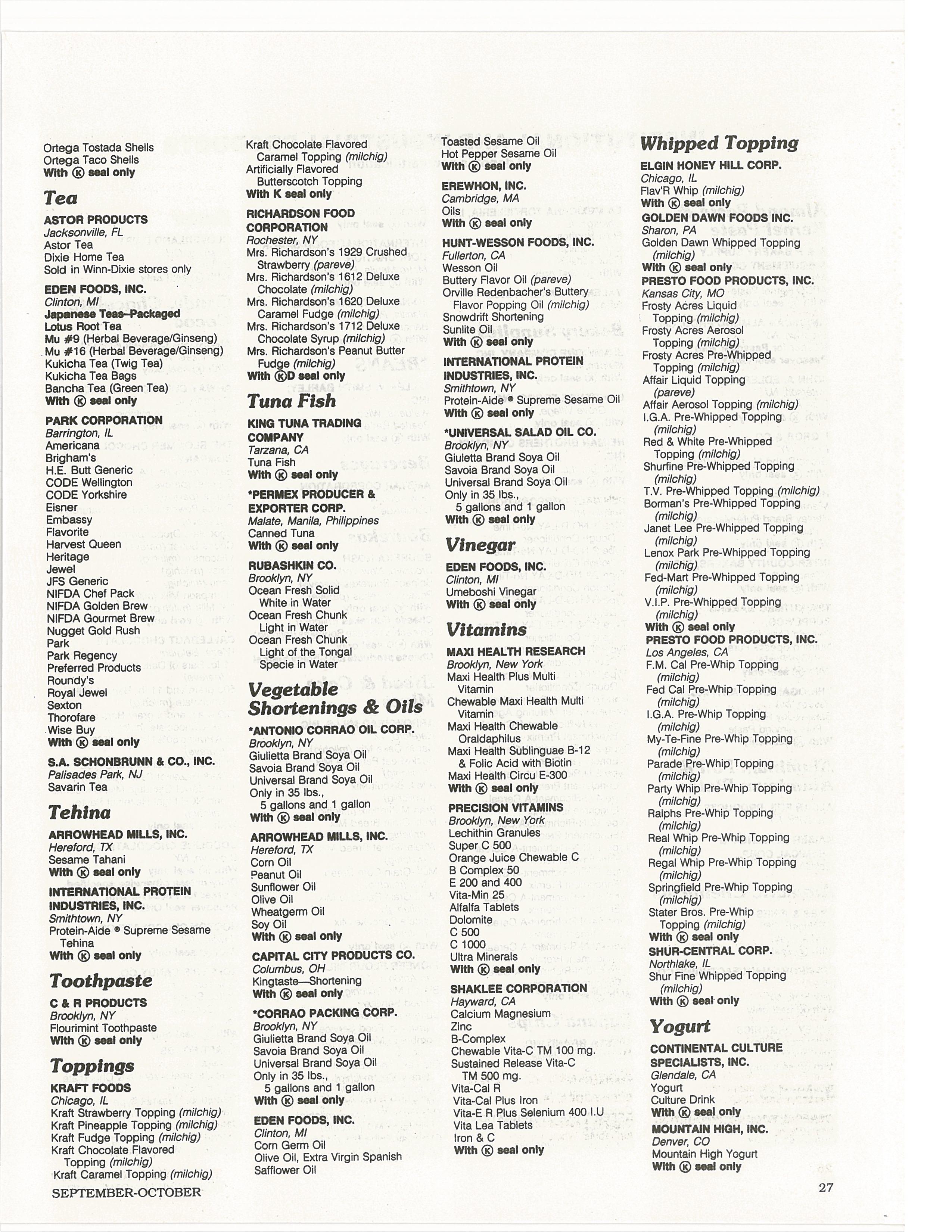 CA~flAL ~ PRODUCTS CO.