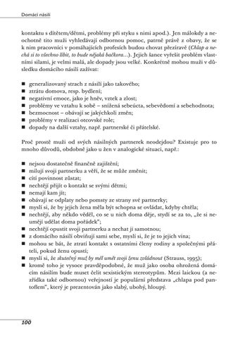 Domácí násilí je nebezpečný celospolečenský jev. Publikace přináší ucelené informace o jeho jednotlivých podobách, formách a typech. Popisuje cyklus násilí, jeho výskyt v české populaci, pomáhajícím profesionálům nabízí metody a prostředky k jeho identifikaci. Seznamuje s projevy chování a jednání hlavních aktérů domácího násilí - ohrožených osob a osob násilných. Představuje systém pomoci osobám ohroženým domácím násilím, včetně jejich právních možností a možností ze strany státu při řešení domácího násilí. Detailně popisuje činnost intervenčních center - specializovaných pracovišť pro osoby ohrožené domácím násilím, komunikaci a zásady intervence při práci s touto cílovou skupinou. Odborný text je doplněn kazuistikami a příběhy lidí, kteří si prošli nelehkým postavením osob ohrožených domácím násilím.