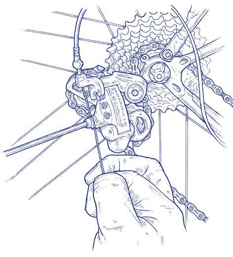 Po nasazení řetězu je potřeba seřídit přehazovačku tak, aby posouvala řetěz mezi pastorky a přes převody bez toho, aby spadl.