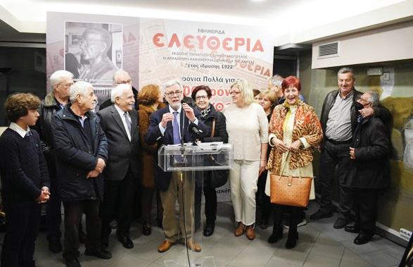 επικράτειας του ∆ήμου να βρίσκονται στην πρέπουσα κατάσταση. Αγώνας για την ανάκτηση της «Ελευθερίας» - ιδρύει ινστιτούτο στο όνομα του πατέρα του Γ. ΔΗΜΗΤΡΑΚΟΠΟΥΛΟΣ: Ένα ζωντανό ριμέικ στο πλούσιο παρελθόν της «Ελευθερίας» αποτέλεσε η σημερινή γιορτή, για την επέτειο των 100 χρόνων από την ίδρυση της εφημερίδας, που πραγματοποίησε