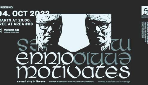 13TΡΙΤΗ 4 ΟΚΤΩΒΡΙΟΥ 2022 www.kosmoslarissa.gr•διασκέδαση •ψυχαγωγία Ennio Motivates: Προβολή βίντεο στο Wisedog Το Wisedog σε συνεργασία με τον Πολιτιστικό Σύλλογο φίλων μουσικής Ennio Morricone Ελλάδος, παρουσιάζει σήμερα Τρίτη 04 Οκτωβρίου στις 19:00 στο Area #03 σε προβολή βίντεο που επιμελήθηκε ο Λευτέρης Μπαντζανούλης, πλάνα