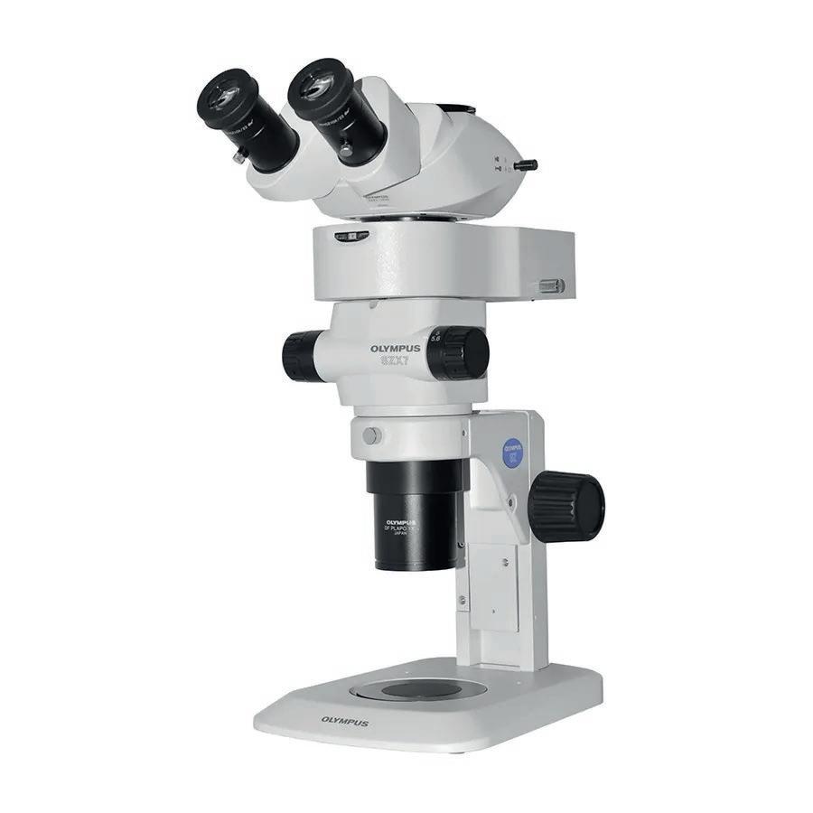 Estereomicroscopio trinocular con sistema óptico CMO y doble iluminación LED.