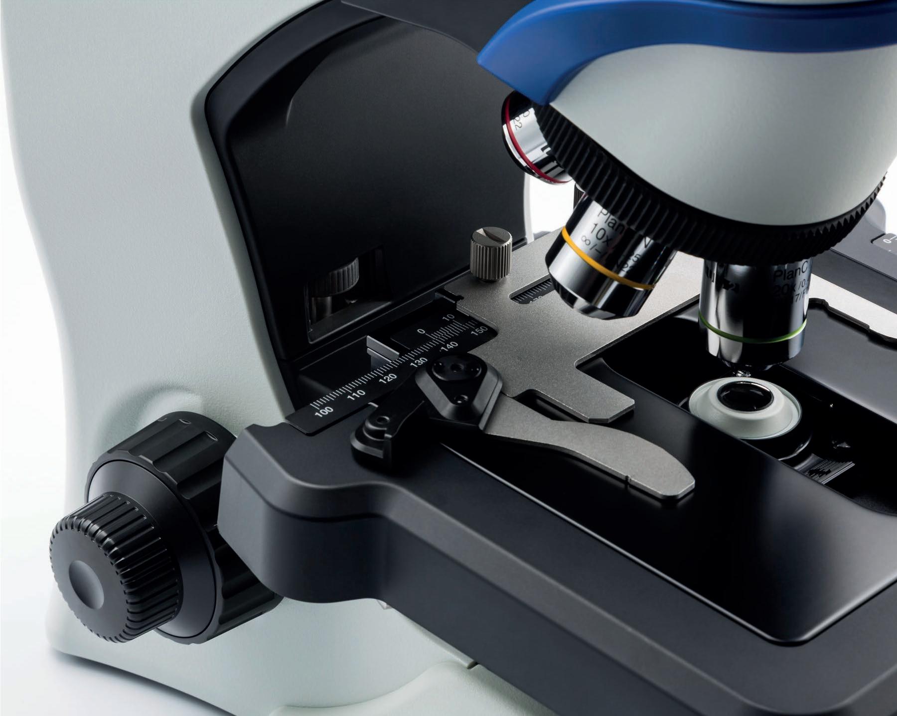 Platina ultrabaja con mando de control XY sin cremallera y sistema de ajuste de enfoque que evita la caída.