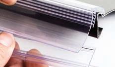 02 ClearVision® Flat Mount Ticket Molding (pg 36) mounts to any clean, flat surface and maintains the existing shelf edge angle.