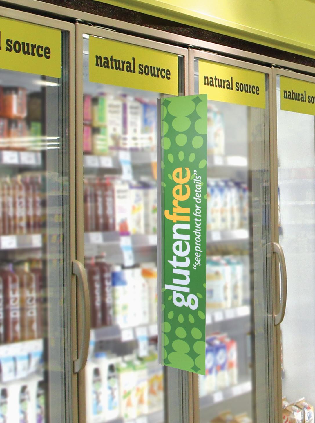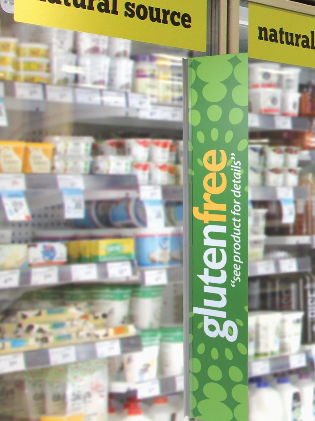 02 “Gluten Free” Aisle Sign (pg 93) helps your customers find “gluten free” products easily. Call us for more information about our custom sign options.