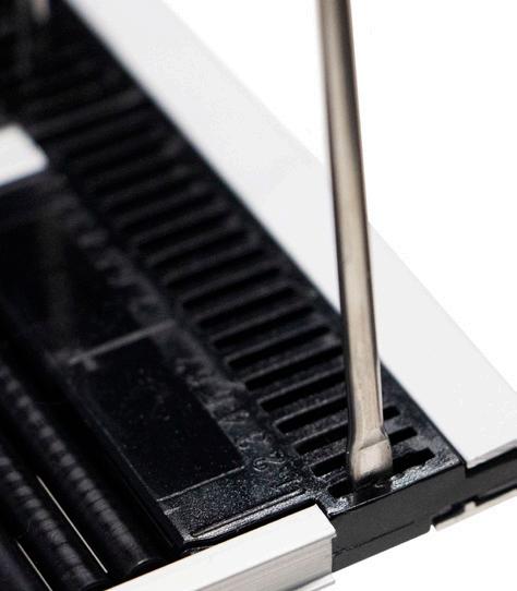 • Slides along clip-in ticket molding to snap into the C-channel during installation, preventing finger burn