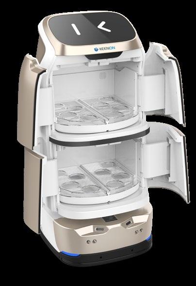 Robotics showcased seven hotel and restaurant robots that could greet guests and hand out information flyers. Their KEENON BUTLERBOT W3 is programmed for room delivery and can even use an elevator. KEENON also visited the RC Show in Toronto in April to show off their new multi-functional delivery robot, the Dinerbot T10.