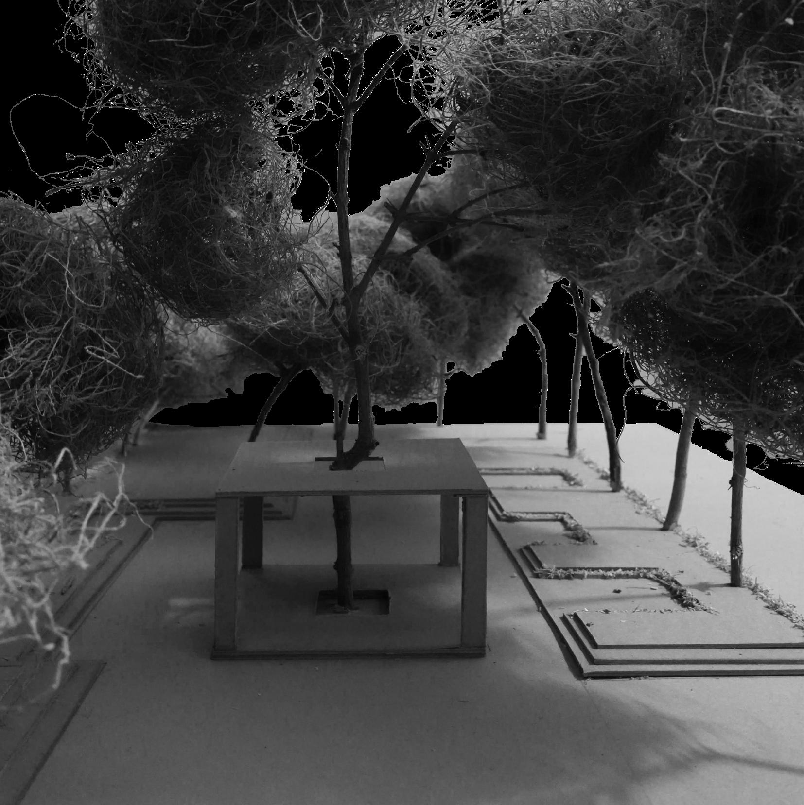This studio brief imparts the value of sensitivity when it comes to the end users. A vocational training center for the specially abled with dyslexia, ADHD, autism etc. in Ahmedabad. The site consolidates of two existing trees - a Banyan tree and a Neem tree creating diagonal axis.