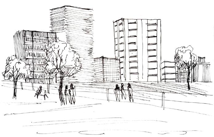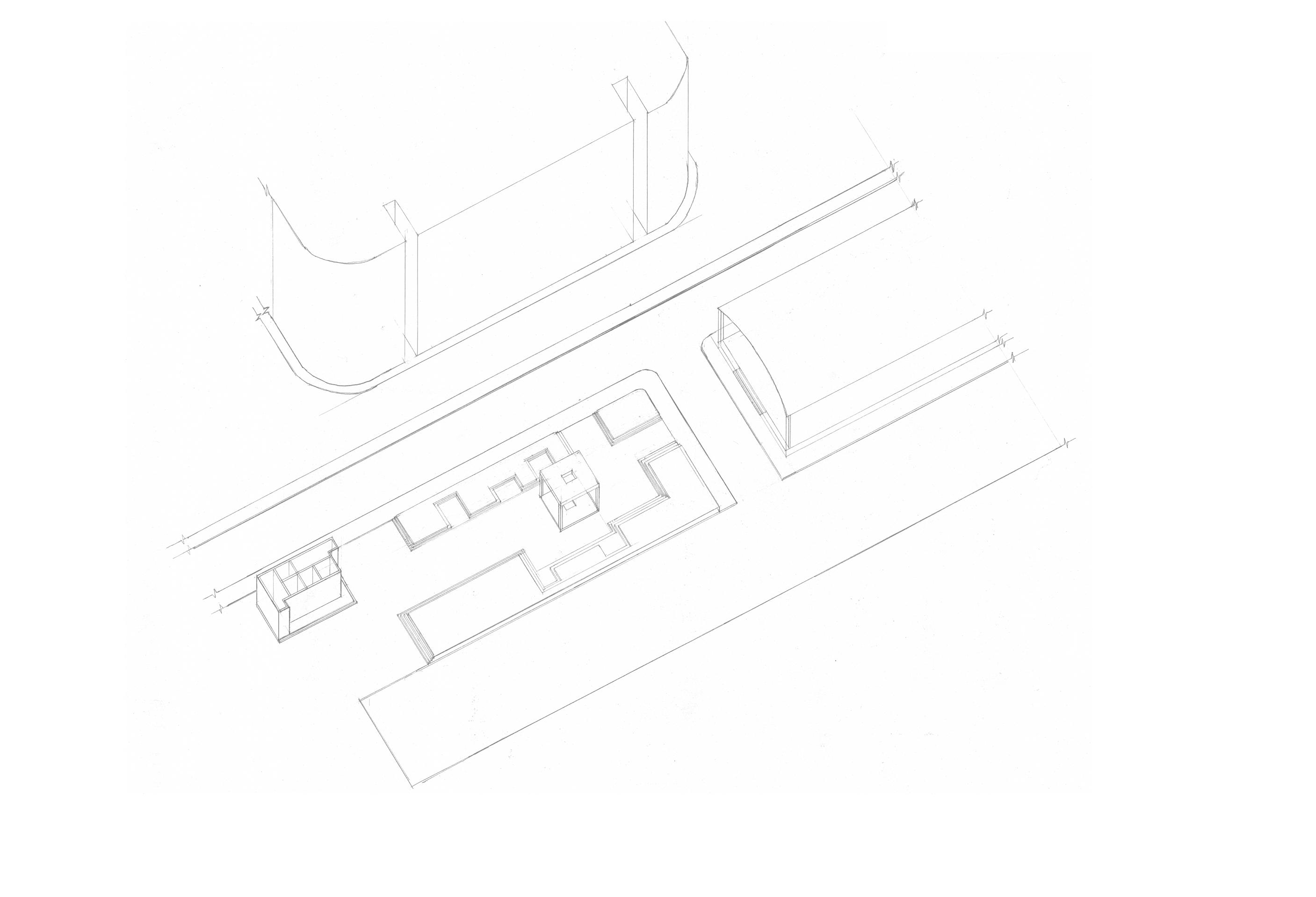 Plinths and pockets showing different spaces and levels with a central gazebo in between being a focal point.