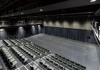 The first five rows of seating can be removed and taken away from the floor. Simply remove the temporary fixing bolts holding the floor to the base of the chair and gently lift the chair, and the seats will roll away. The floor of this area features a trapdoor that can be raised and lowered, and it can also be used as an orchestra pit.