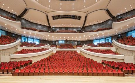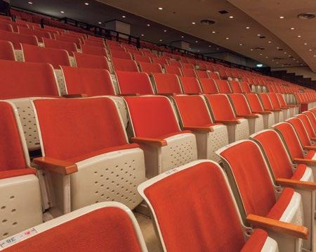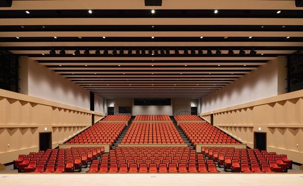 In addition to the seating, the renovations included the installation of elevators in the foyer of the Main Hall, the renewal of restrooms (equipped with bidet seats that have warm water), and the updating of interior signage throughout the venue. With the ceiling renovations in the hall, acoustic reflector panels and other elements were also updated to further enhance the acoustic performance. This has elevated the facility’s status to a highprecision sound facility.