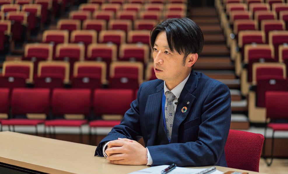 Equipped with 200 retractable seats that can be electrically deployed and stowed as needed, the hall can be used not only as an auditorium for various lectures, but also as a temporary hospital ward in the event of a major disaster. We interviewed Hirofumi Ueno and Ayaka Kawahara who work in the hospital's Management Support Section about how the hospital is utilizing the Miyanowa Hall with its retractable seating, which has been in operation for about 5 years.