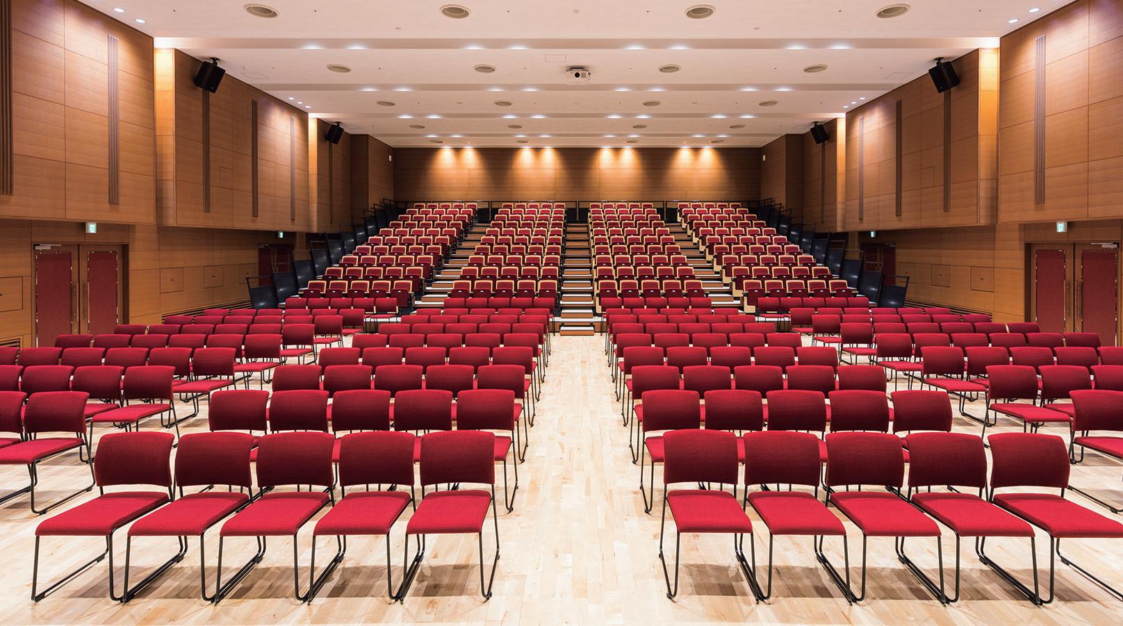 When we started thinking about what to do with the second floor, the idea of building an auditorium came up. The main building has a conference room named “Green Hall” that can accommodate approximately 200 people when its three rooms are connected. Up to that point, seminars and academic conferences were held there, but often the hall wasn’t big enough. Also, the floor is completely flat, so people sitting in the back can’t see the speaker or panelists. when we offered opportunities to bring people together, we faced problems because the space was too small and not functional.