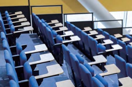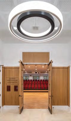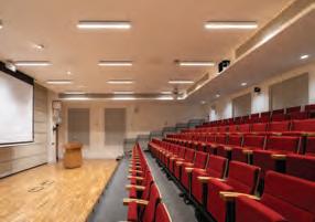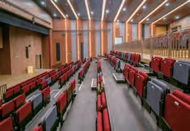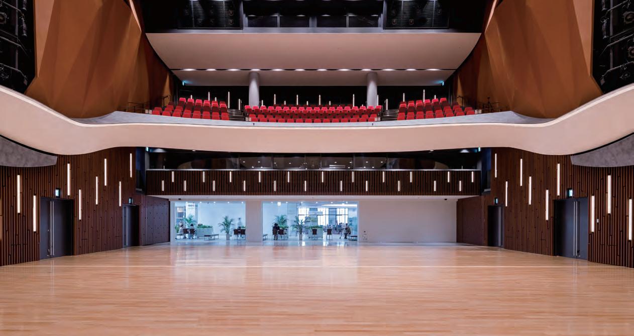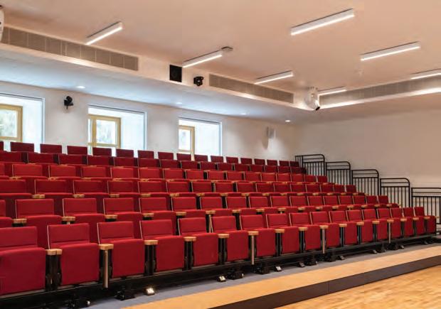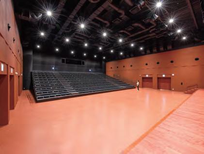 Equipped with a 200-seat electric retractable seating system and built-in medical gas lines, the hall can be used as a temporary ward in the event of a major disaster by retracting the seating.
