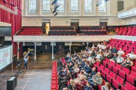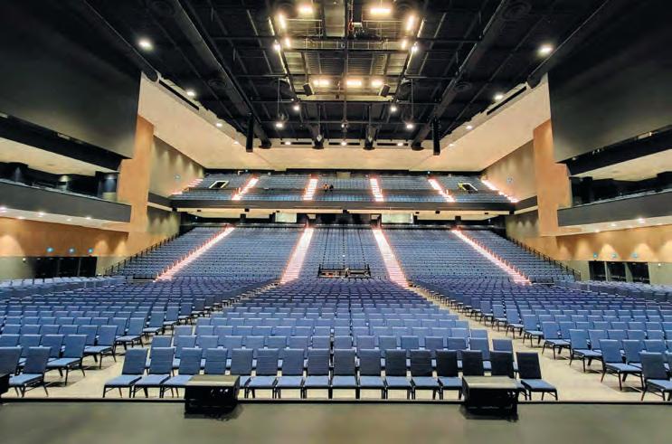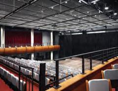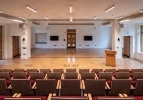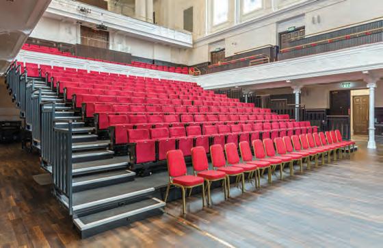 Equipped with 200-seat retractable seating that can be electrically deployed and retracted, the hall can hold up to 380 people with added stacking chairs.