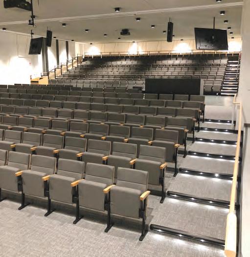 The retractable seating can be moved forward to host lectures with 200 or fewer participants.