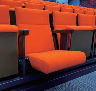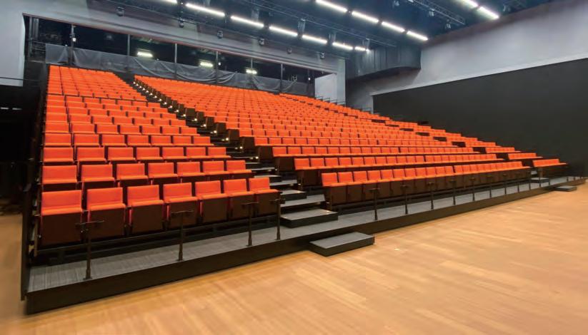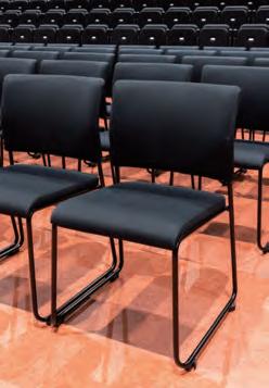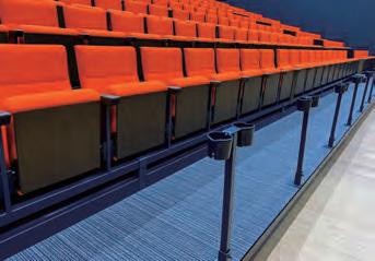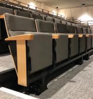 The Axis FC-310 stacking chairs positioned in front of the retractable seating have ganging clips on their legs to help keep the layout looking smart.
