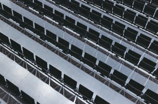 fundamentally different from conventional bench seating, featuring unique structural components, floor specifications, and design. It represents the culmination of over 20 years of retractable seating evolution and more than 60 years of chair technology. New Retractable Seating System making it pos-