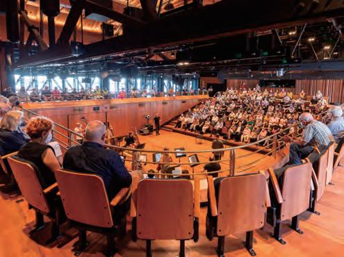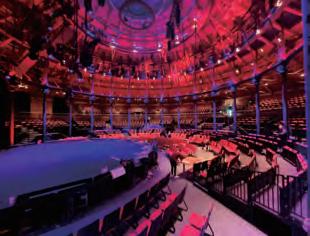 The seats at the front of the audience area are mounted on movable wagons. Toward the rear of the audience area is