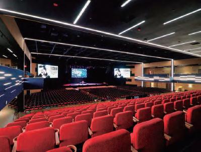 Multi-functional hall accommodating 624 people in theater style and 750 people in flat-floor style.