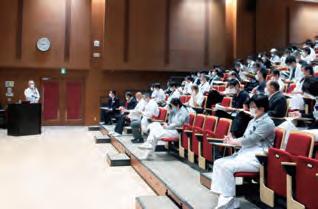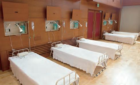 While the hall has a capacity of 380 people, it can also be used for seminars, conferences, presentations, and more by moving the retractable seating forward for groups of 200 people or fewer. It is also used for community seminars, public lectures, and various welfare-related events. During the Covid-19 pandemic, it served as a triage area for fever cases, a vaccination site, and a temporary childcare space for hospital staff’s children when schools were closed.