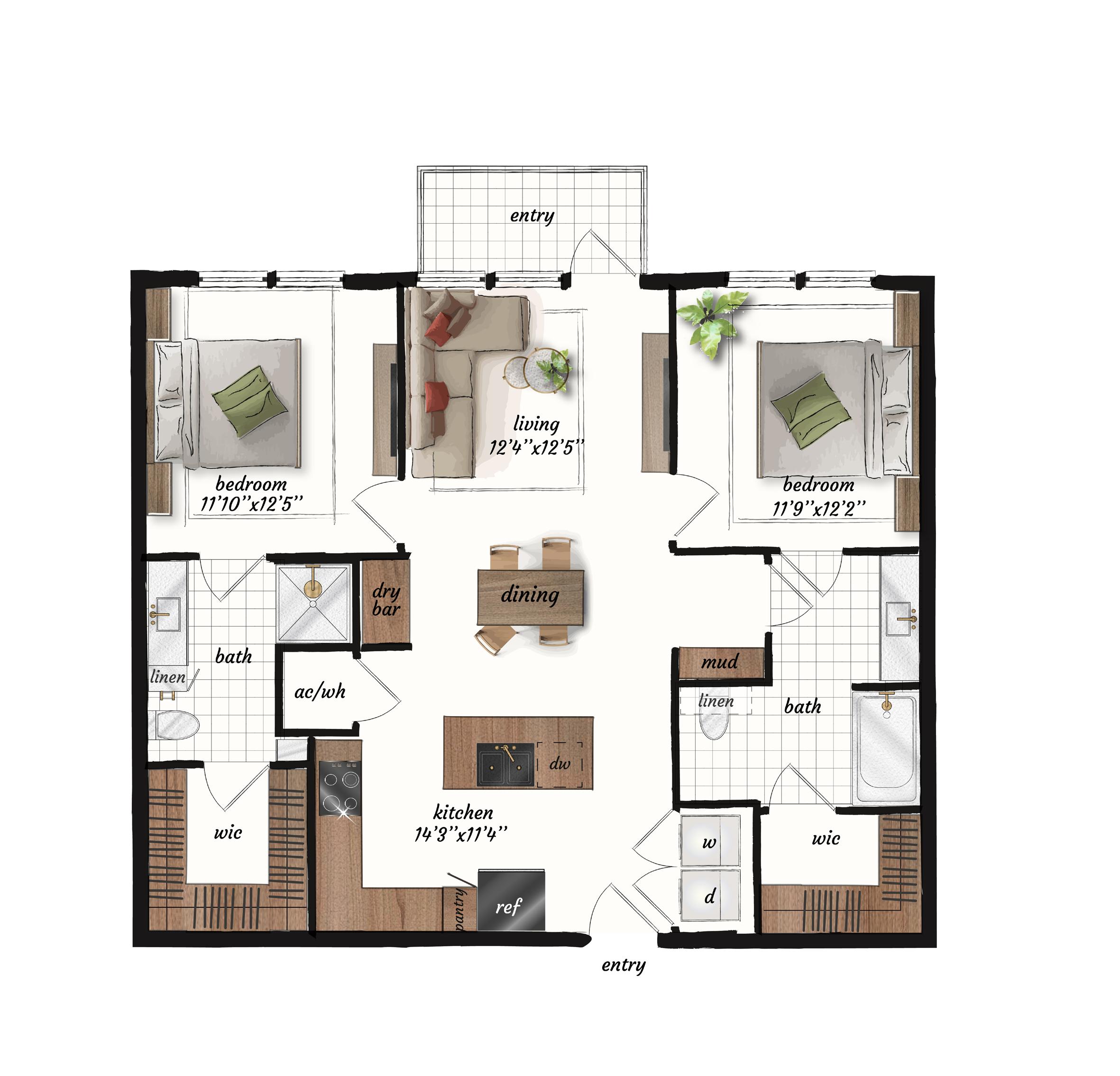 B3 - LW 1080 SQ. FT. 2 BEDROOMS 2 BATHROOMS Level 1