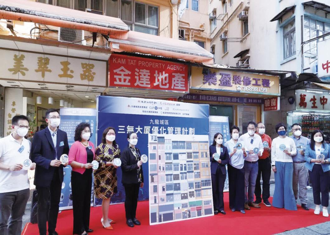 2 九龍城三無大廈管理計劃啟動 由九龍社團聯會及社區關愛協會有限公司主辦的「九龍城區三無大廈管理 計劃 」 10 月 7 日啟動 , 希望改善區內該類大廈衞生清潔情況 , 優化大廈公共區 域環境,及提供各類的支援服務。 目前全港有 4000 餘棟 「 三無大樓 」, 其中九龍城區內數目多達數百棟 。 計劃第一階段以九龍城區土瓜灣道 9 11 號作為計劃試點大廈 , 聆聽並收集居 民意見,邀請支持機構參加改善工作,其中行動包括:拆除損壞舊信箱,為包 括劏房在內所有單位統一更換全新不鏽鋼信箱;修葺並整理電線,以符合消防 規例的防火物料美化樓道線路管道等。 第二階段將會向九龍城區其他「三無大廈」推行,並提供更多元的支援, 旨在打造一個屬於社區的、可持續的自給自足良性就業系統,實現市民參與治 理社區。 www.KowLoonPost.hk 分享本版內容 新聞回11 顧(2022 年 10 月 5 日至 2022 年 10 月 18 日) 2022 年 10 月 18 日 星期二 ▲ 活動贊助人蕭靖瑜 、 九龍社團聯會油尖 旺地區委員會主任楊子熙 、 香港關愛社群 協會主席李耳環 、 油尖旺社團聯會首席會 長羅家聰一齊同小朋友互動體驗遊戲 義工與基層單親小孩共融 ▲九龍城區三無大廈管理計劃日前啟動。(主辦方提供) ▲ 多戶家庭進行家居維修 ▲「愛心前行在觀塘」活動在秀茂坪社區會堂舉行揭幕禮