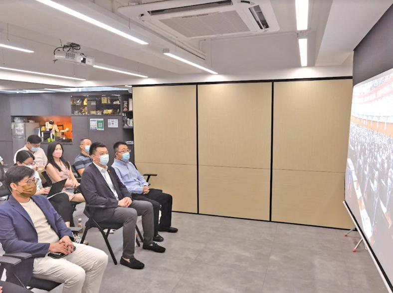 文、陳偉明、梁毓偉,以及一眾架構成員,當天在會所的會議室齊聚一堂, 收看大會開幕會,認真聆聽習近平總書記所作的重要報告。
