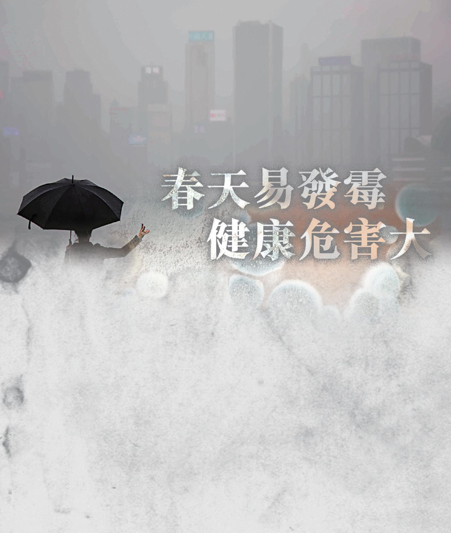 香港的春天天氣潮濕 , 濕度常在 90% 以 上 , 經常可以在屋企的浴室角落 、 廚房水槽邊緣等地方 , 發現一些小黑 點 。 這些看似不起眼的小點 , 實則是霉菌的蹤跡 。 很多人以為霉菌只是會 令到家居不美觀 , 但原來更是健康的 「 隱形殺手 」 。