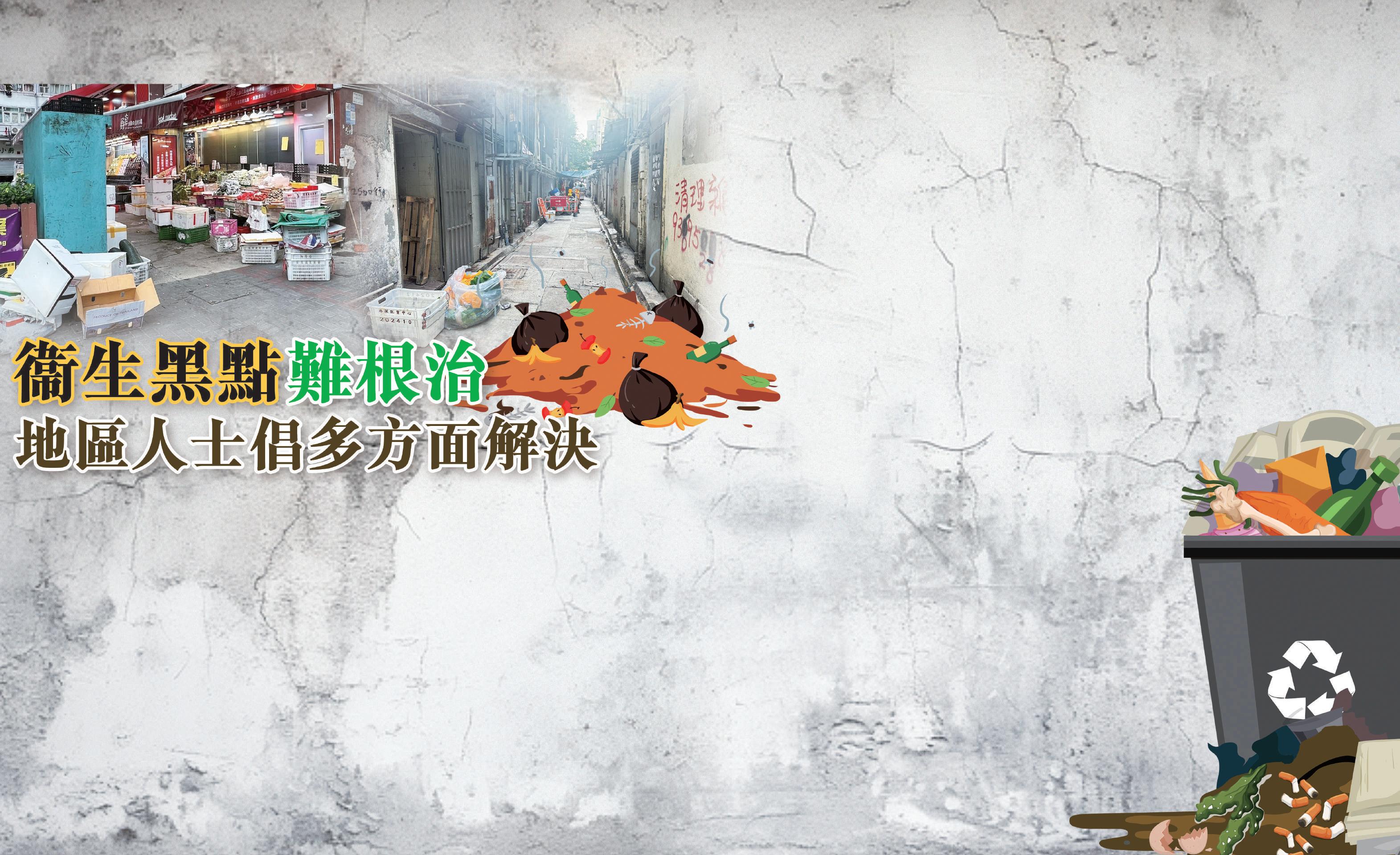 深 水 埗 區 仍 有 五 個 黑 點 未 達 標 , 其中北河街街市及海壇街一帶更未 見改善 。 深 水 埗 區 議 員 劉 佩 玉 接 受 《 龍週 》 記者訪問時表示 , 這些黑點 主要集中在舊區 , 面臨三大治理難題 。 其一是毗鄰公眾街市和舊樓群 , 人流密集且食肆眾多 , 清潔難度大 ; 二是區內 「 三無大廈 」 缺乏管理 ,