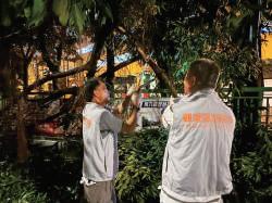 ▲觀塘區關愛隊在風颱後協 助移除阻塞行人通道塌樹