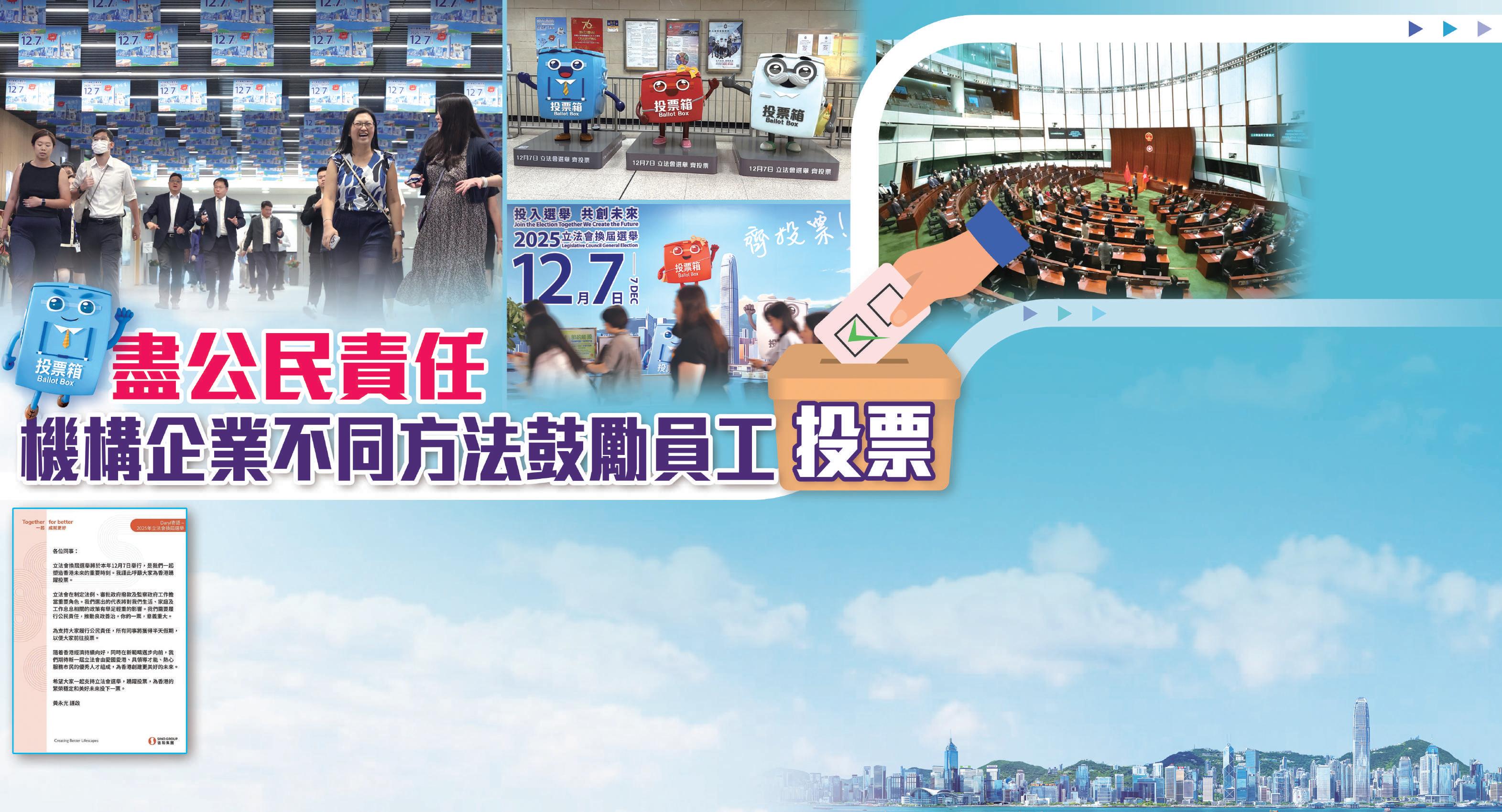 在地方選區、功能界別和選舉委員會界別合共選出 90 名議員。這段日子,多間機構和企業用不 同的方法,呼籲員工盡公民責任,踴躍投票。