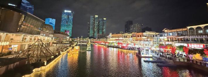 ▲晚上可乘船夜遊或沿岸漫步千燈湖公園,欣賞兩岸燈飾